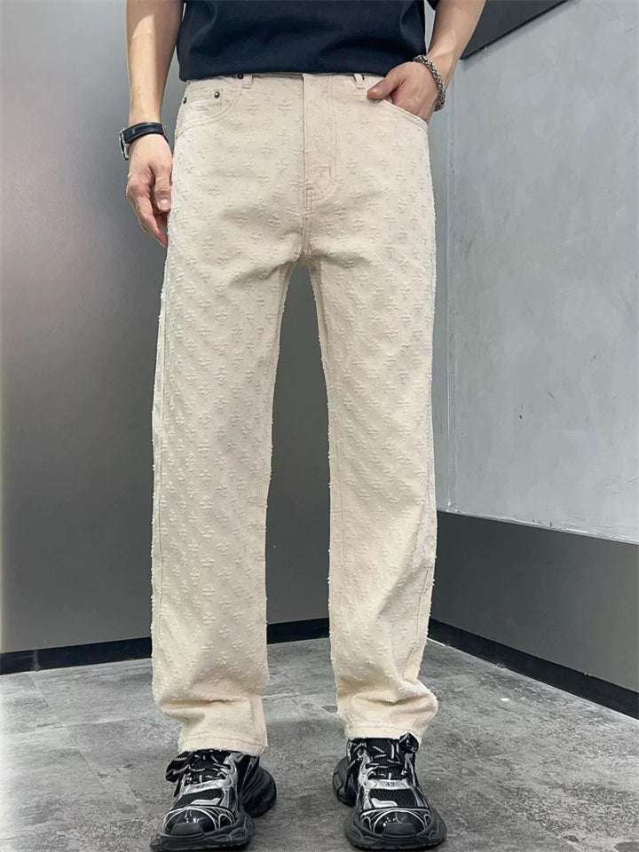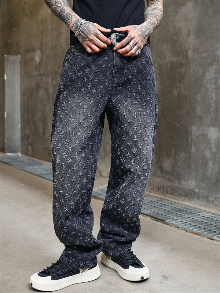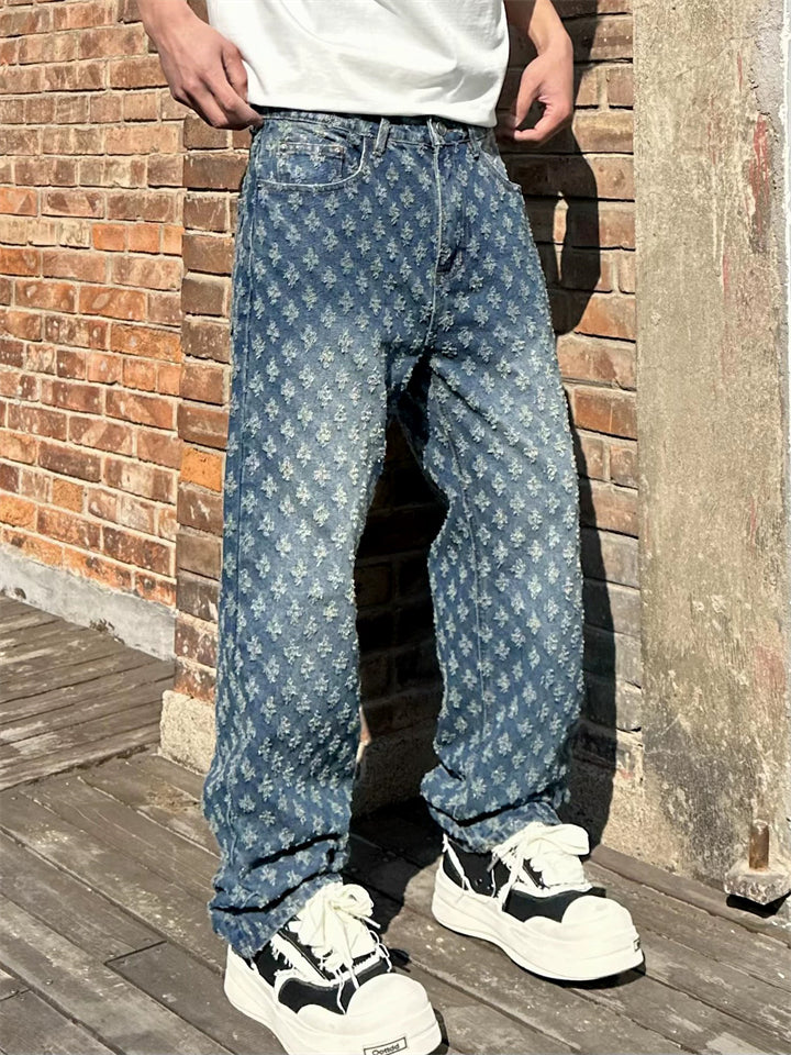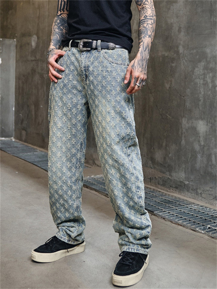 Men's American Style Vintage Jacquard Regular Fit Straight Leg Jeans