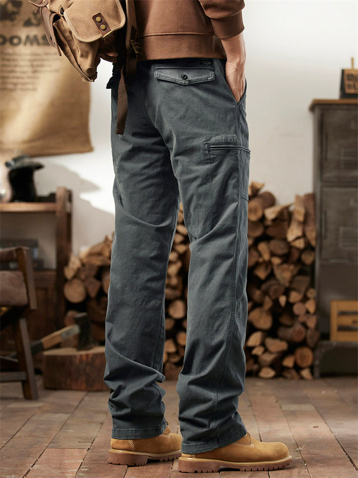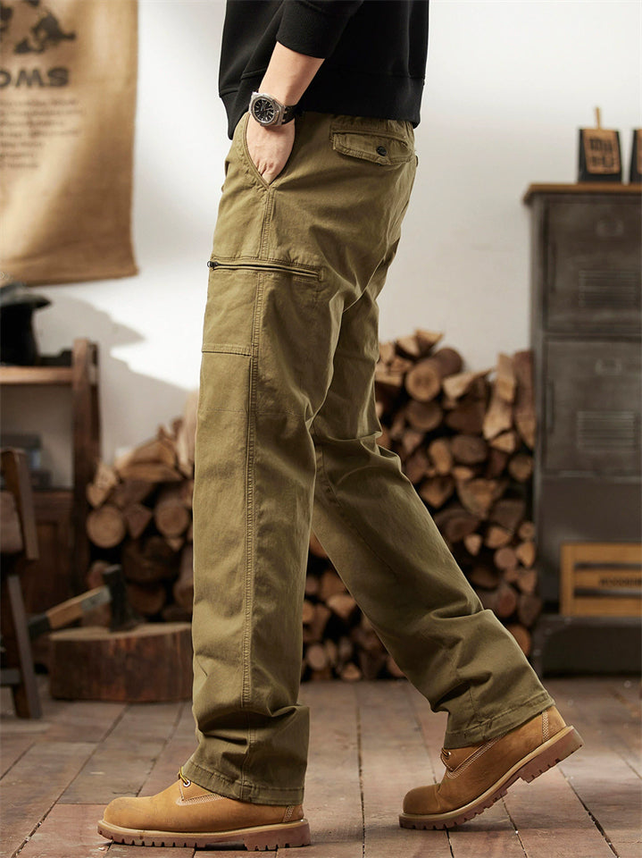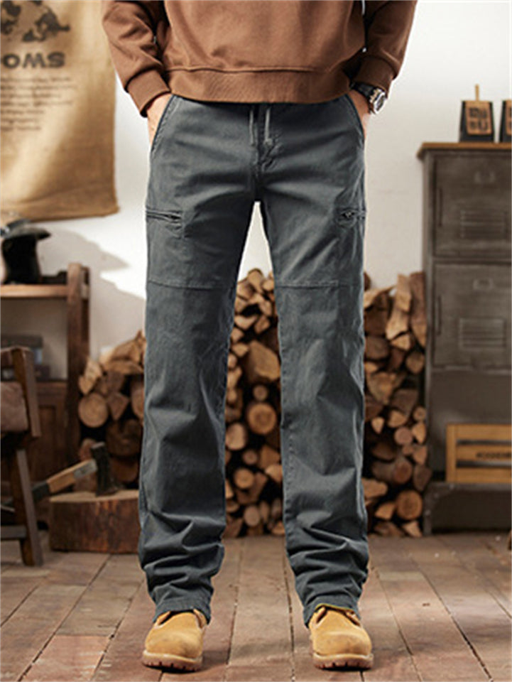Men's Autumn Outdoor Cotton Drawstring Loose Fit Cargo Pants with Multi-Pockets