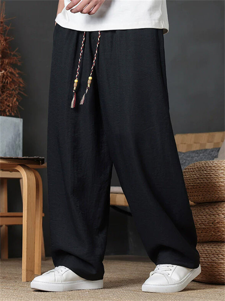 Men's Casual Loose Fit Pants with Tassels Summer Breathable Comfortable