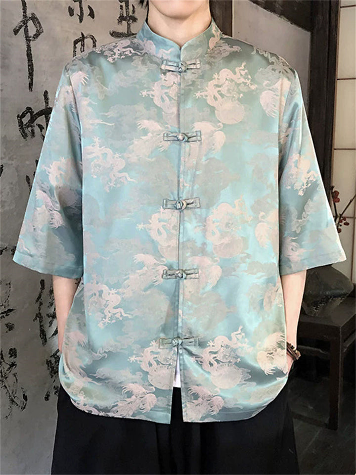 Men's Chinese Style Dragon Phoenix Jacquard Short Sleeve Tangsuit Shirts
