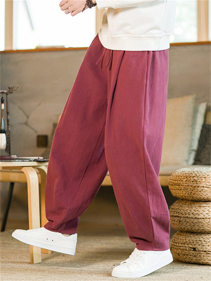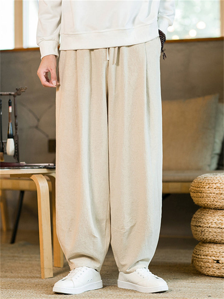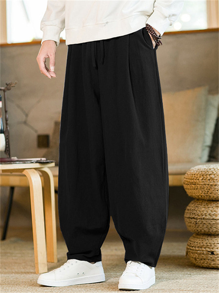 Men's Chinese Style Linen Blend Loose Fit Casual Bloomer Pants