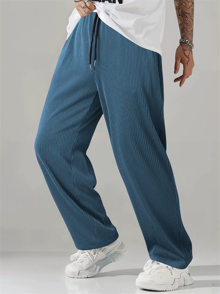 Men's Loose Fit Leisure Striped Drape Sporty Wide Leg Pants