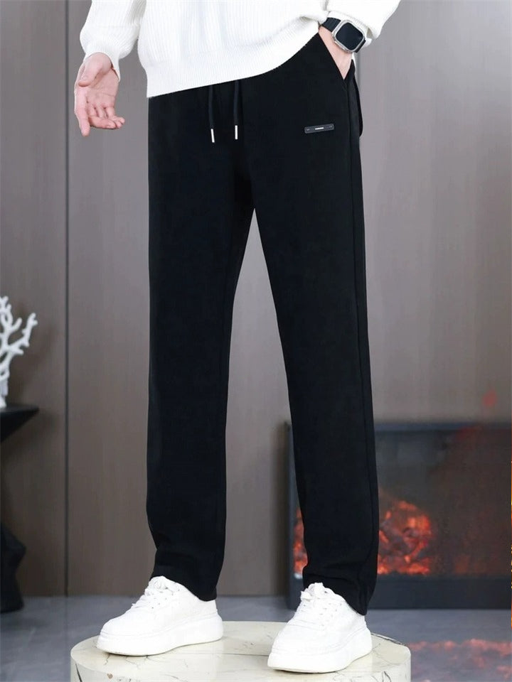 Men's Simple Slim Fit Drawstring Winter Fleece Lined Casual Pants