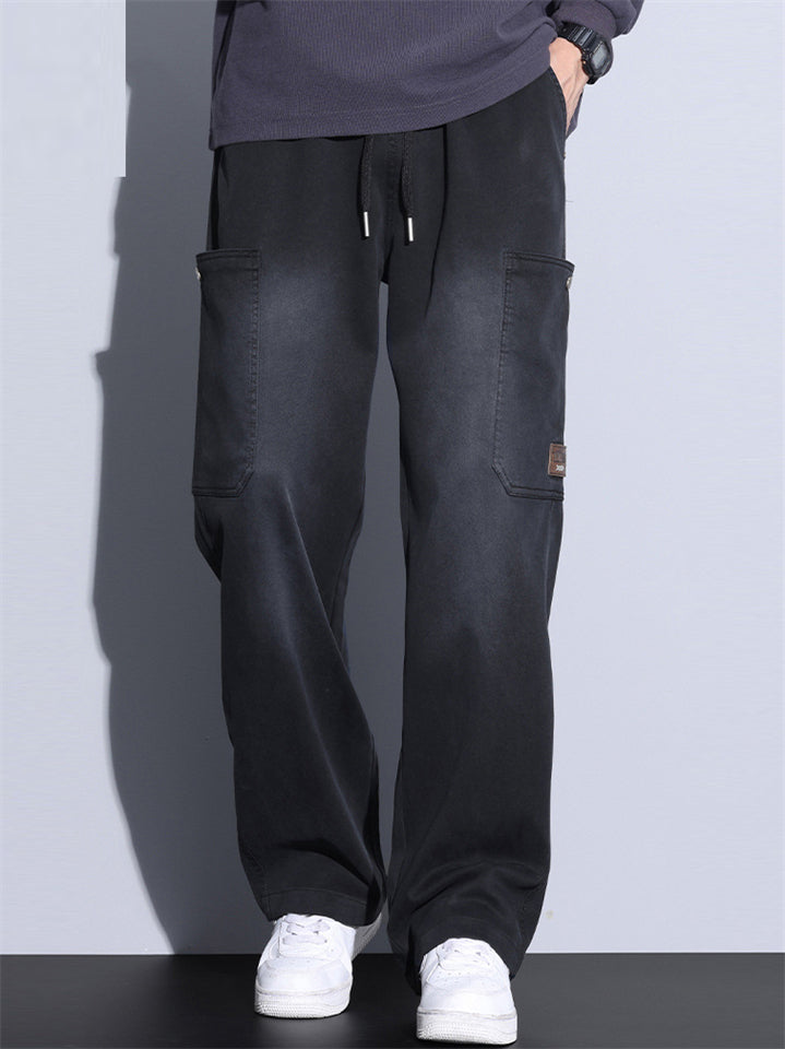 Men's Spring Autumn Mid Waist Loose Straight Casual Pants
