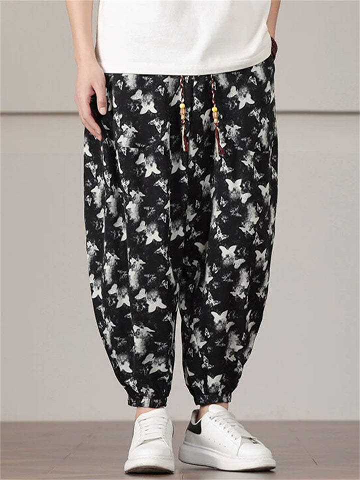 Men's Summer Chinese Style Butterfly Print Loose Fit Harem Pants