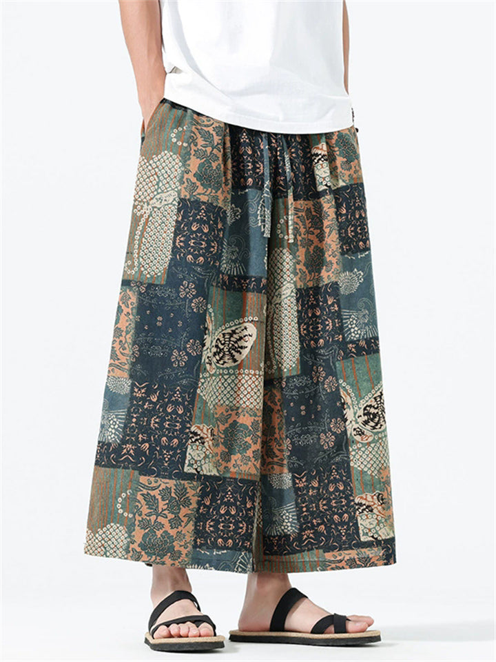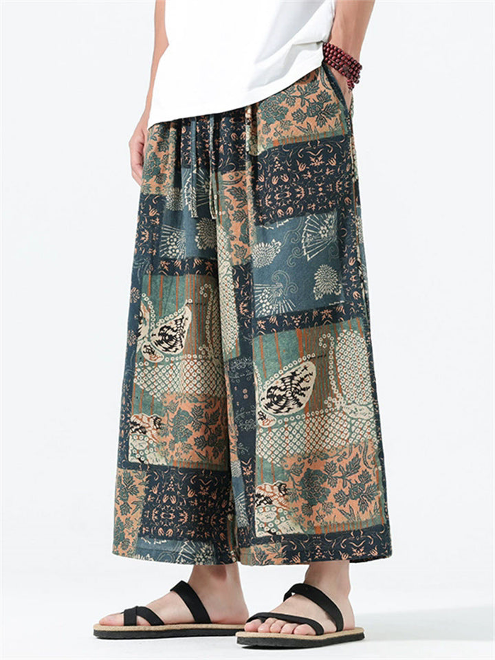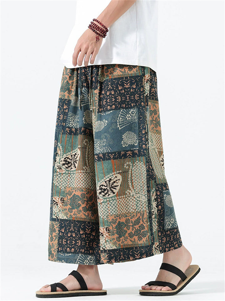 Men's Summer Ethnic Style Beach Bloomers Drop Crotch Capri Pants