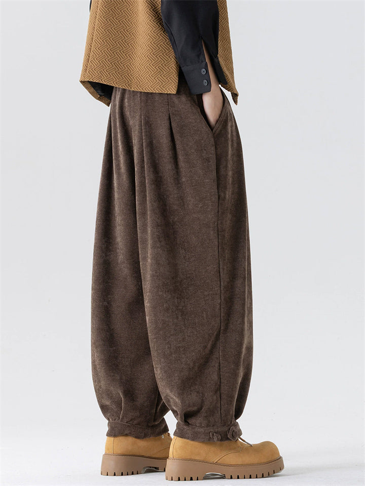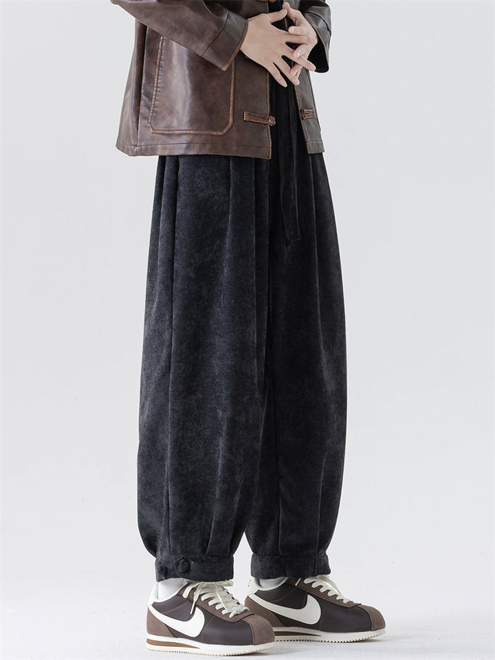 Winter Comfy Elastic Waist Wide Leg Pants for Men with Buttons Details Cuff