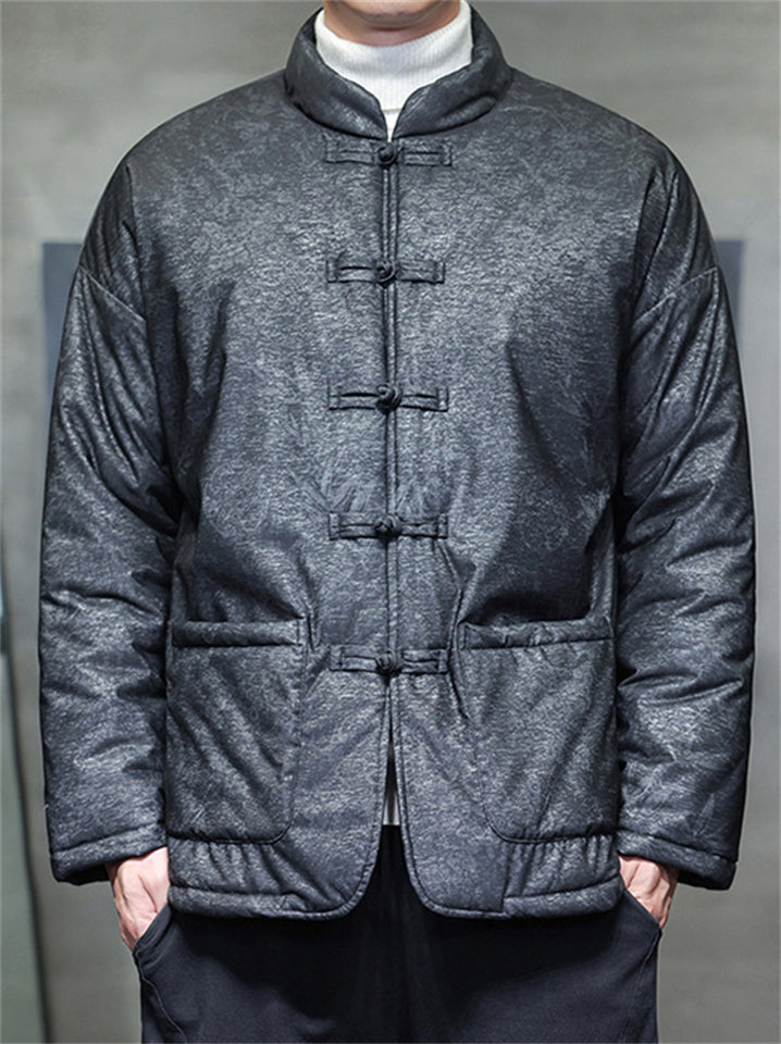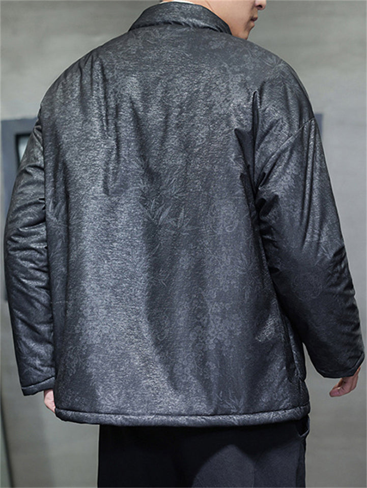 Men's Winter Casual Thermal Lined Floral Print Stand Collar Tangsuit Coats