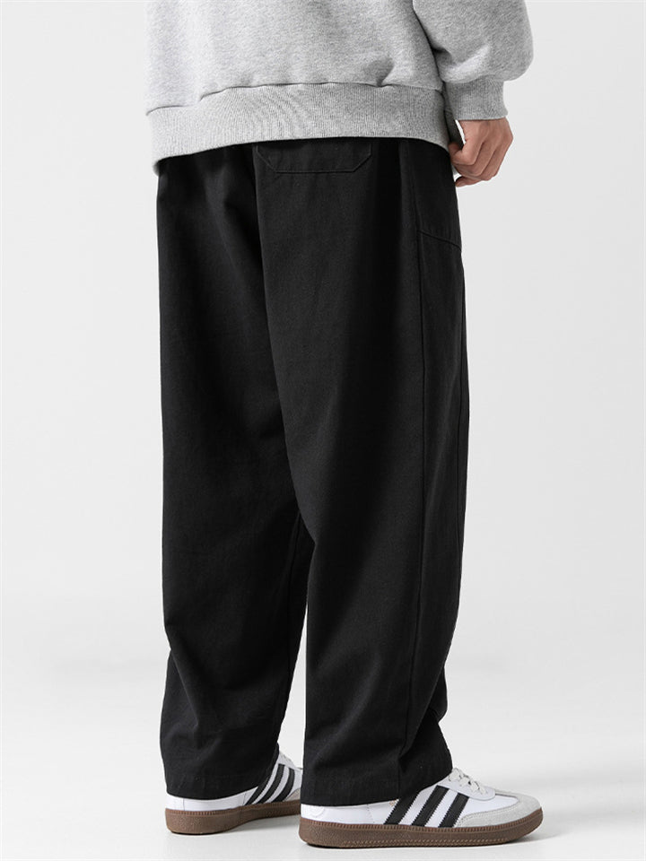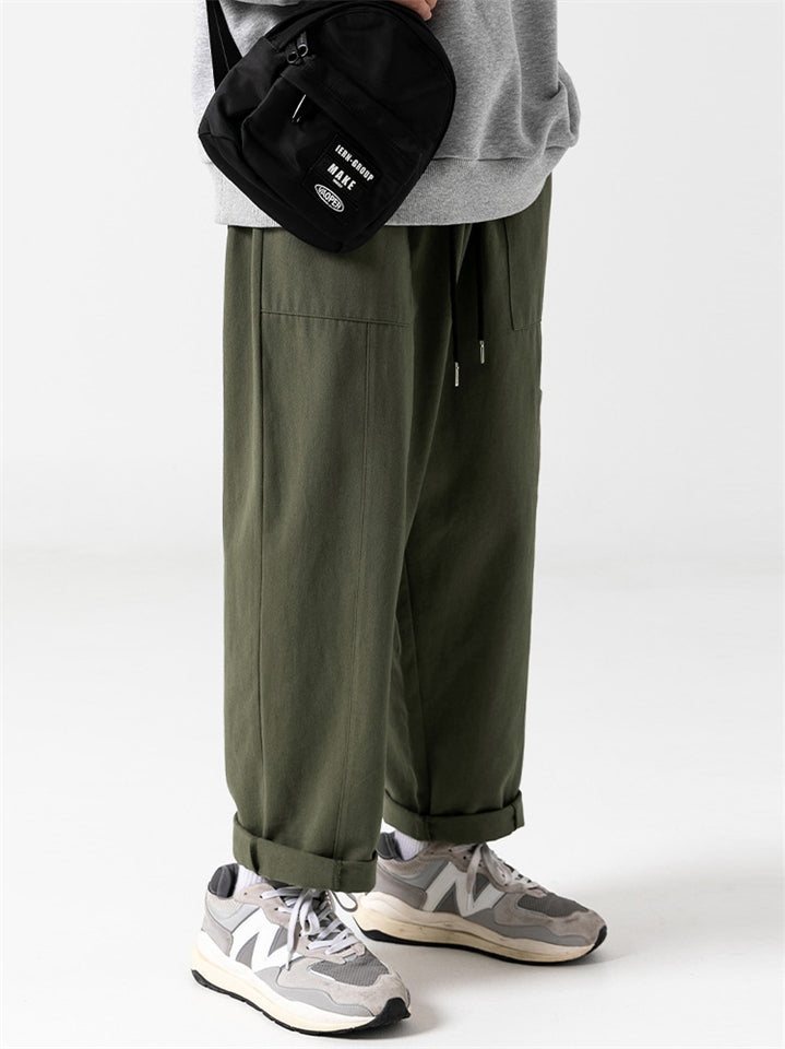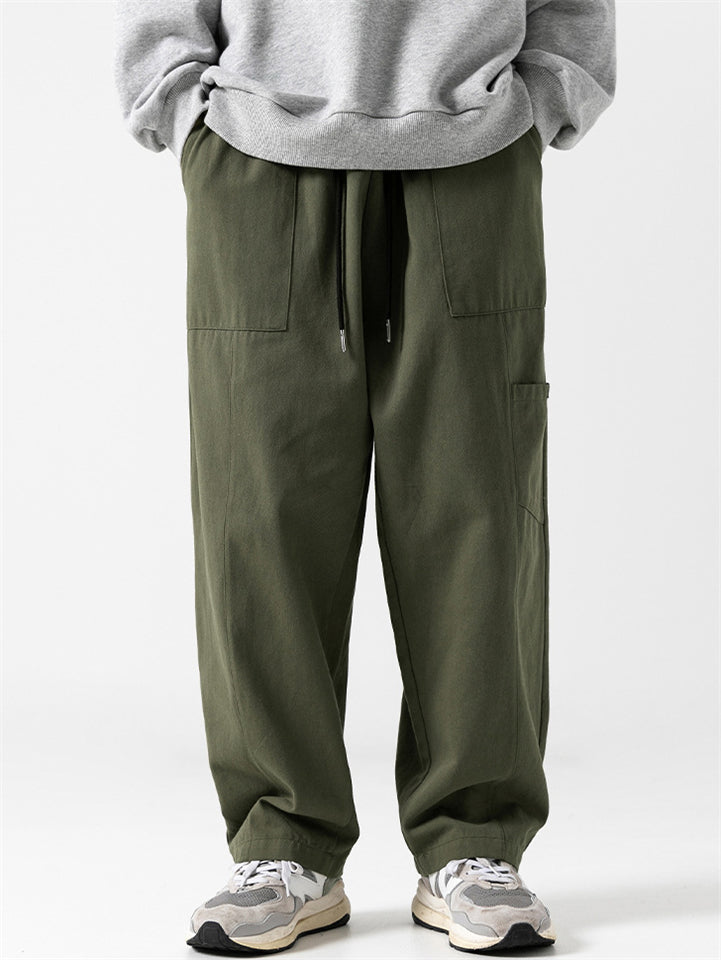 Men's Japanese Style Streetwear Loose Fit Straight Leg Cargo Pants with Pockets