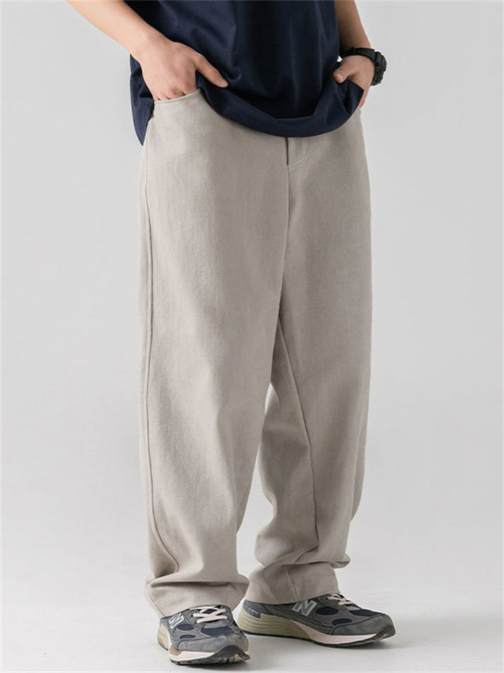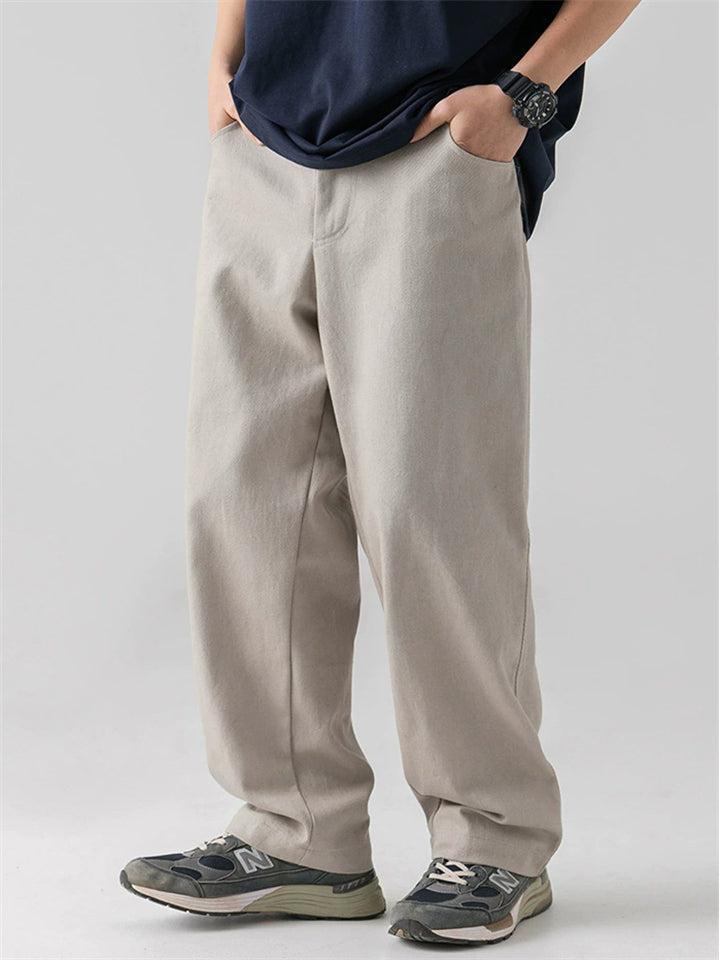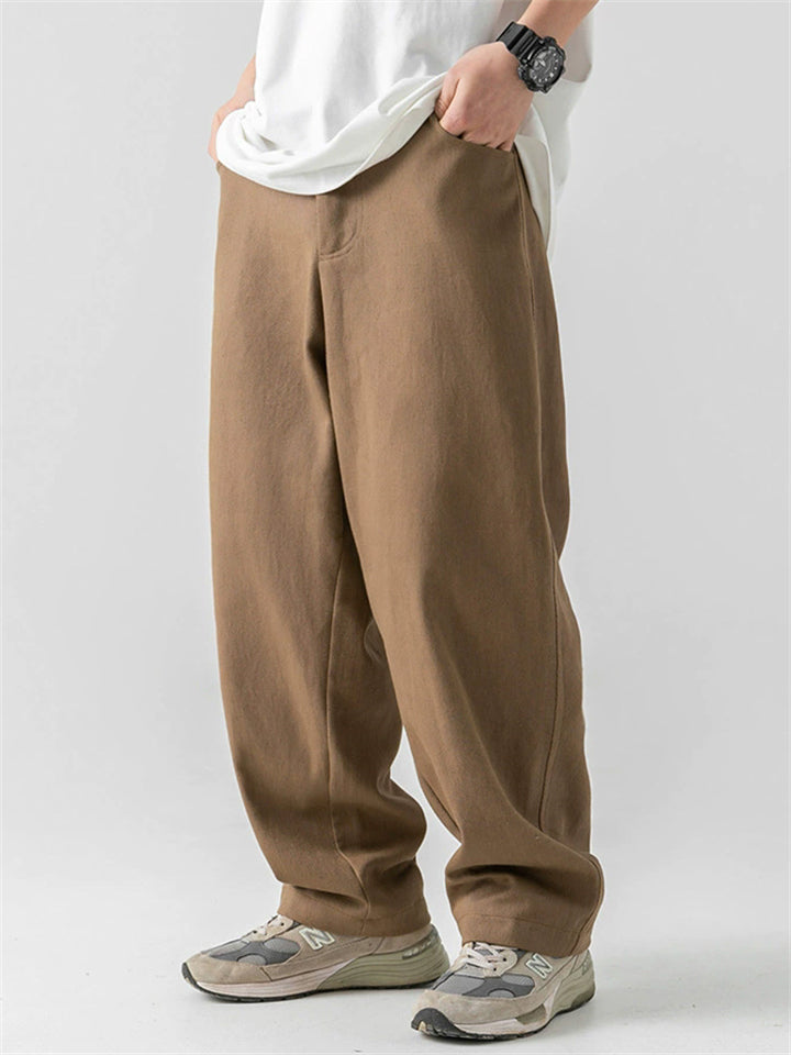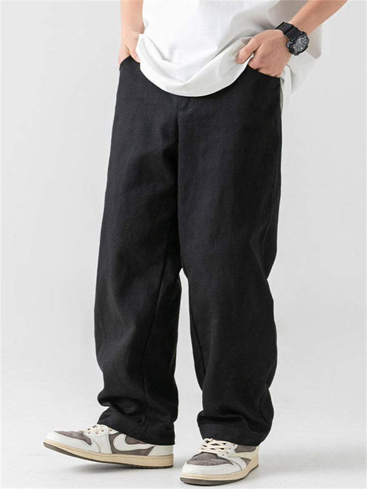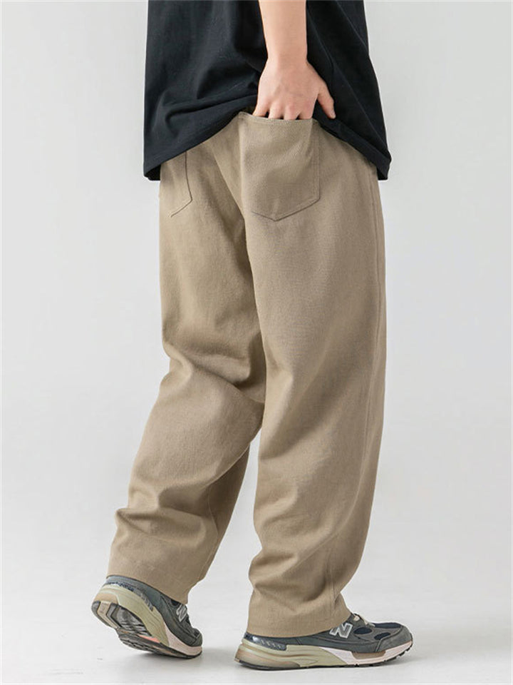 Men's Retro Comfy Cotton Casual Japanese Style Solid Color Pants