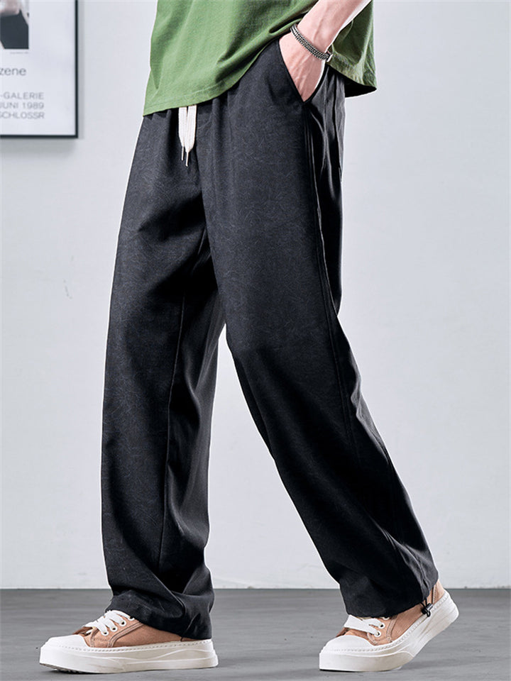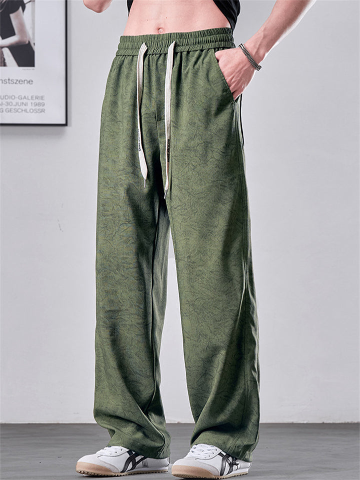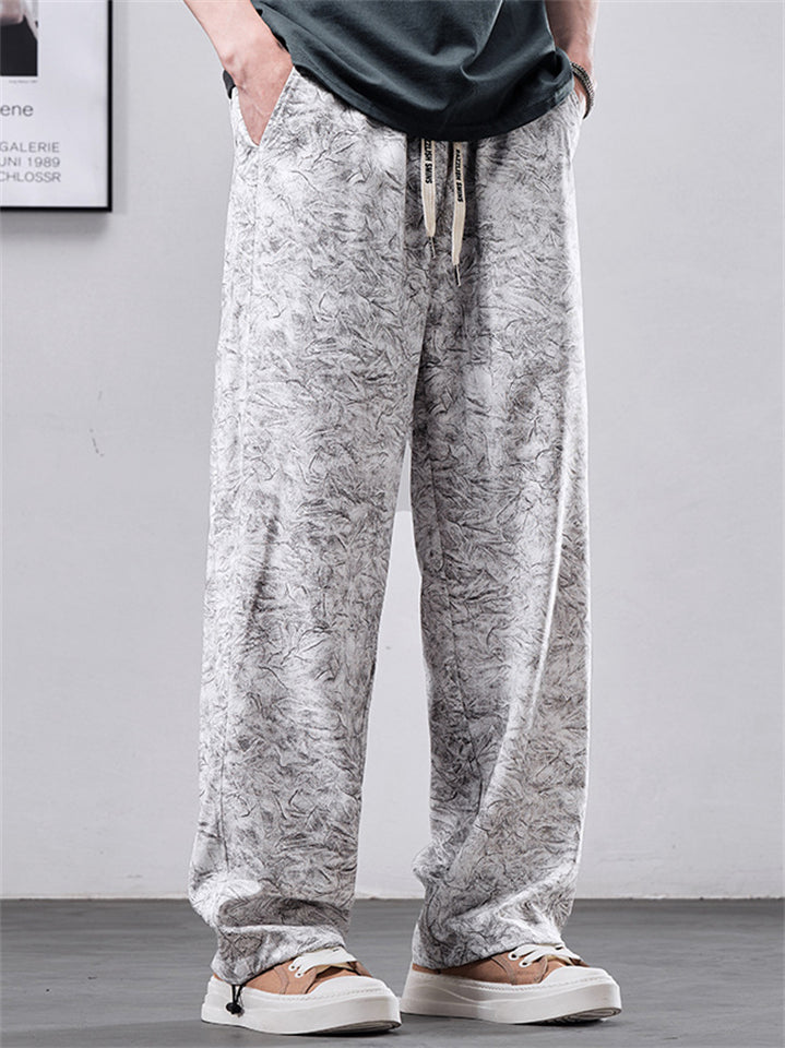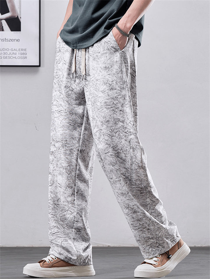 Men's Loose Fit Casual Straight Leg Pants with Snowflake Dyeing and Drawstring