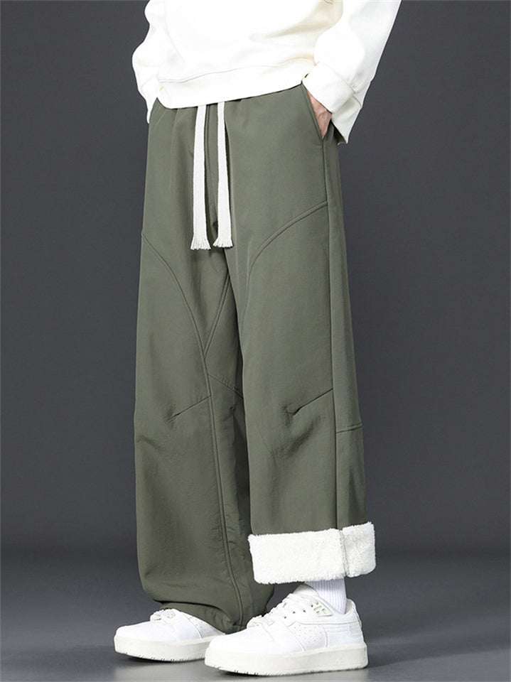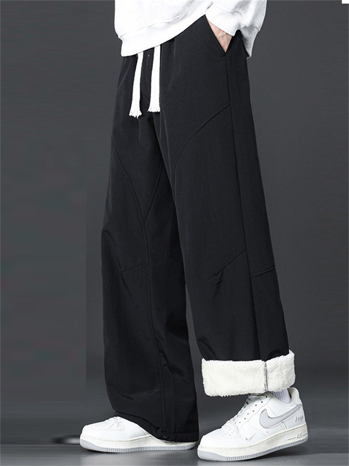 Men's Warm Winter Fleece-Lined Casual Straight Leg Pants Loose Fit
