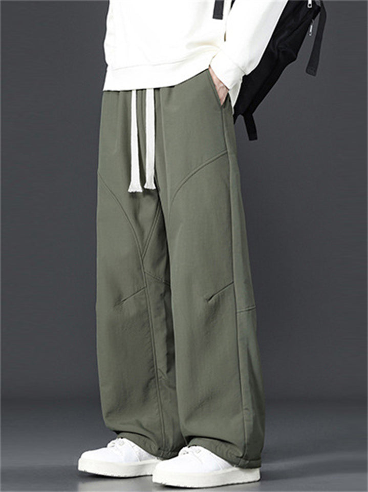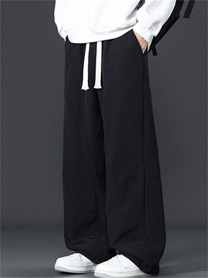 Men's Loose Fit Casual Straight Leg Pants with Snowflake Dyeing and Drawstring