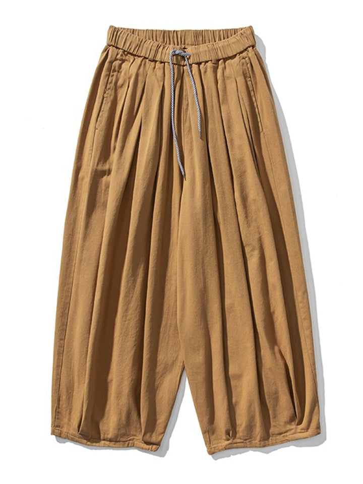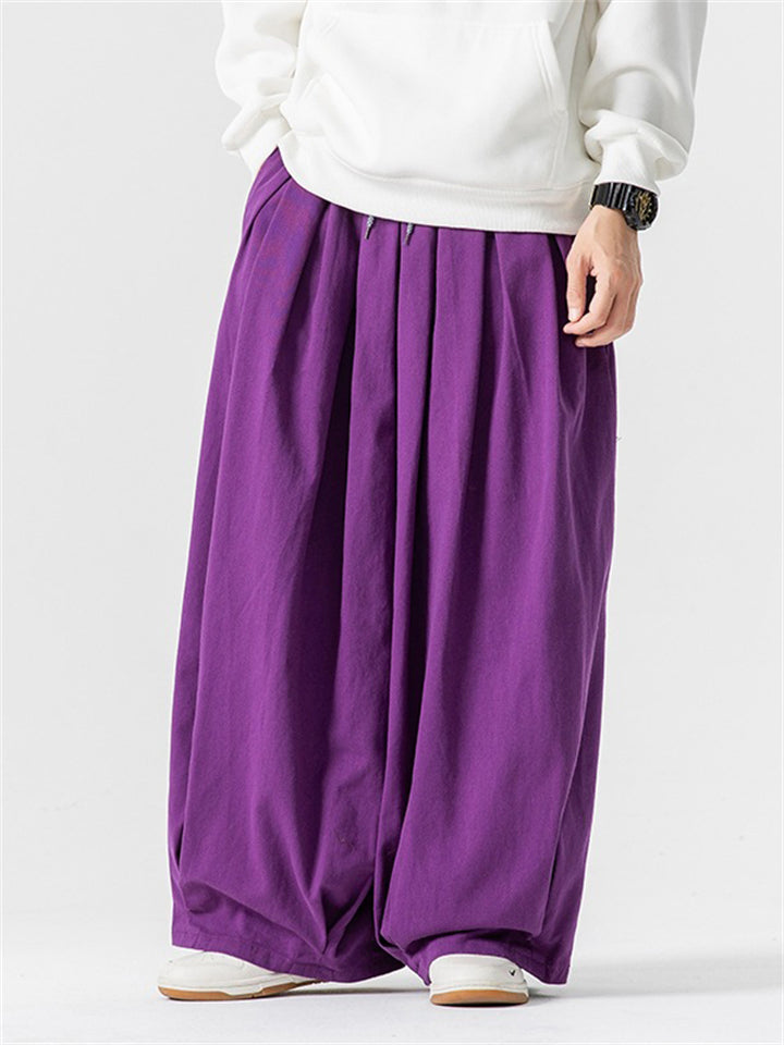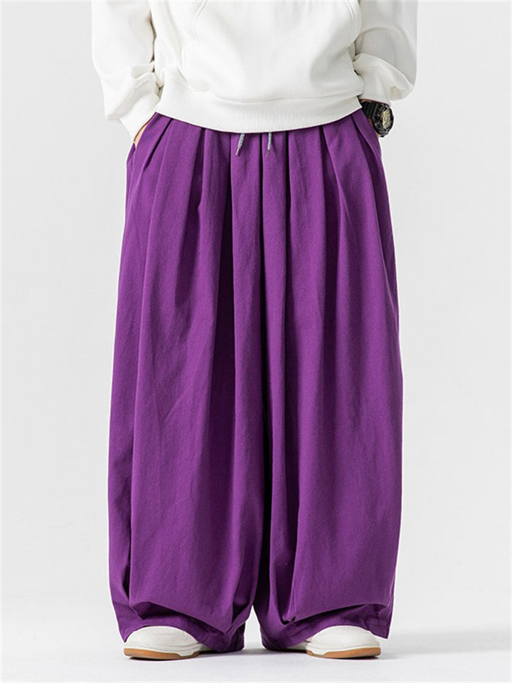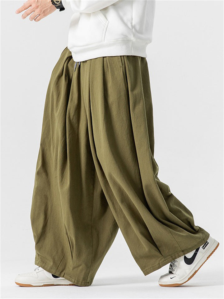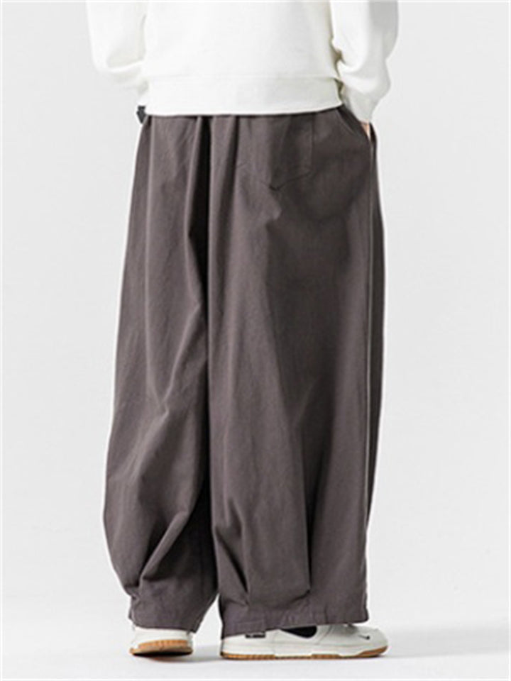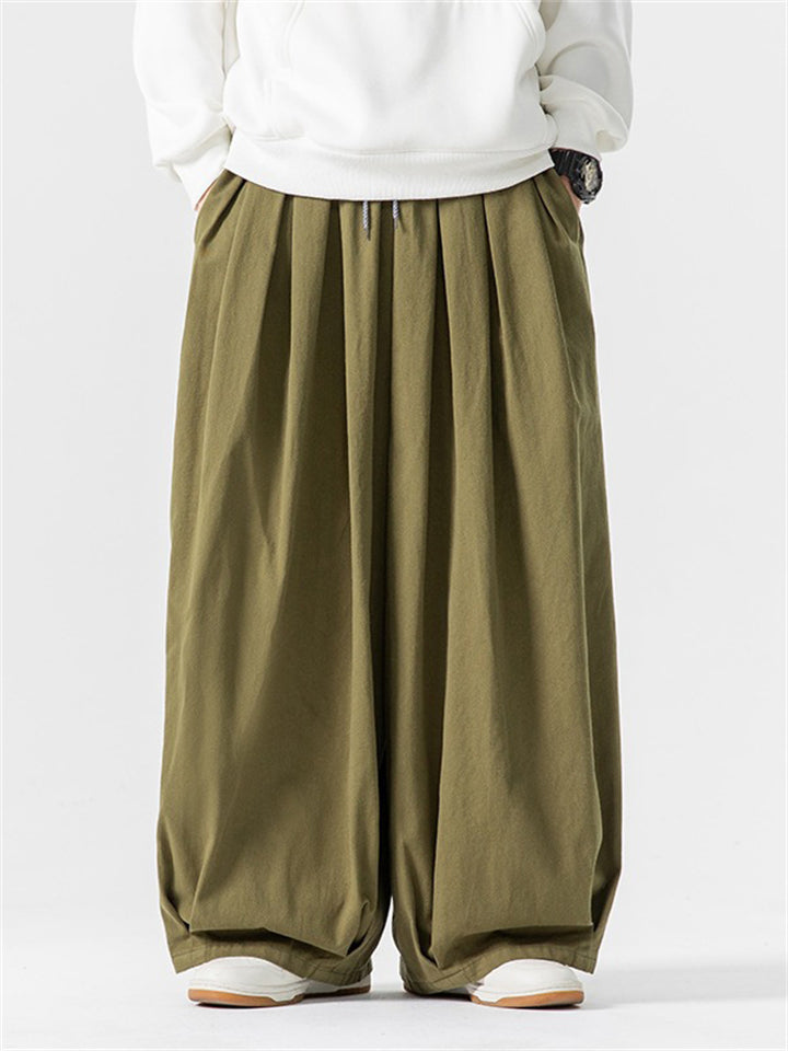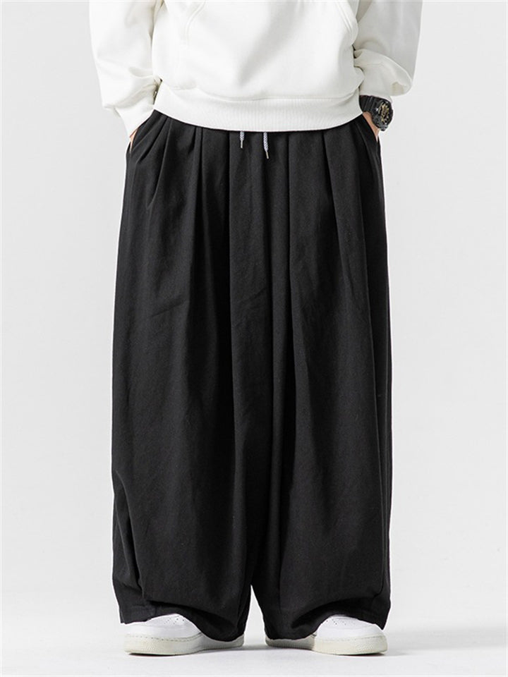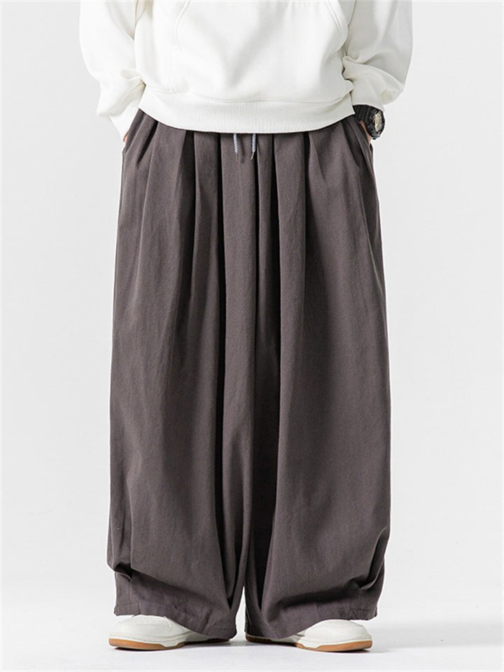Simple Relaxed Fit Drawstring Wide Leg Pants for Men