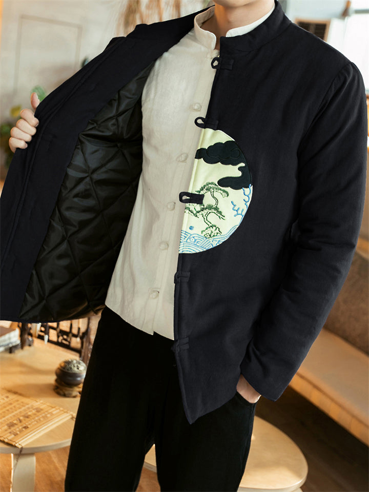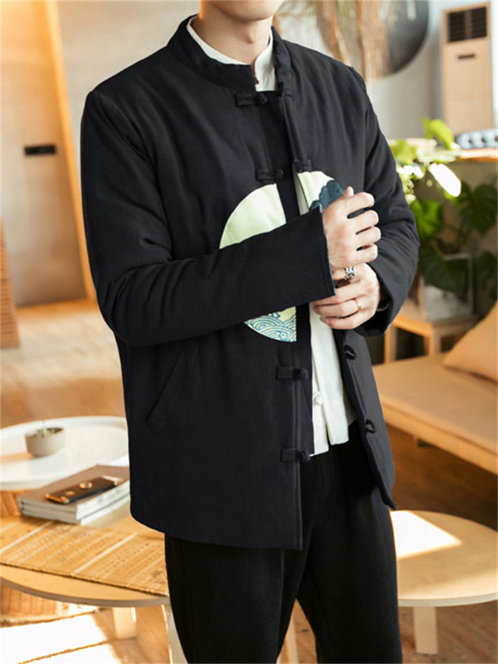 Men's Winter Vintage Solid Color Tangsuit Padded Quilted Coats