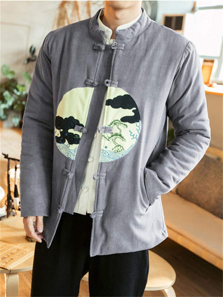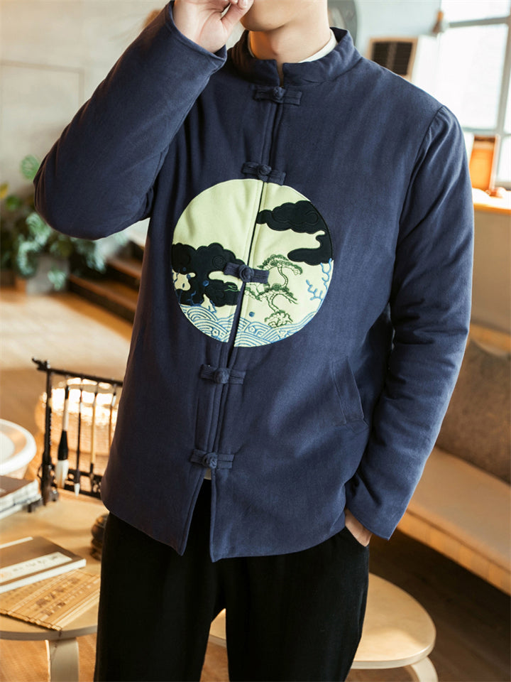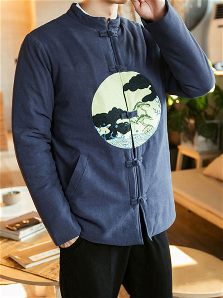 Men's Winter Thicken Chinese Style Printed Frog Button Tangsuit Coats