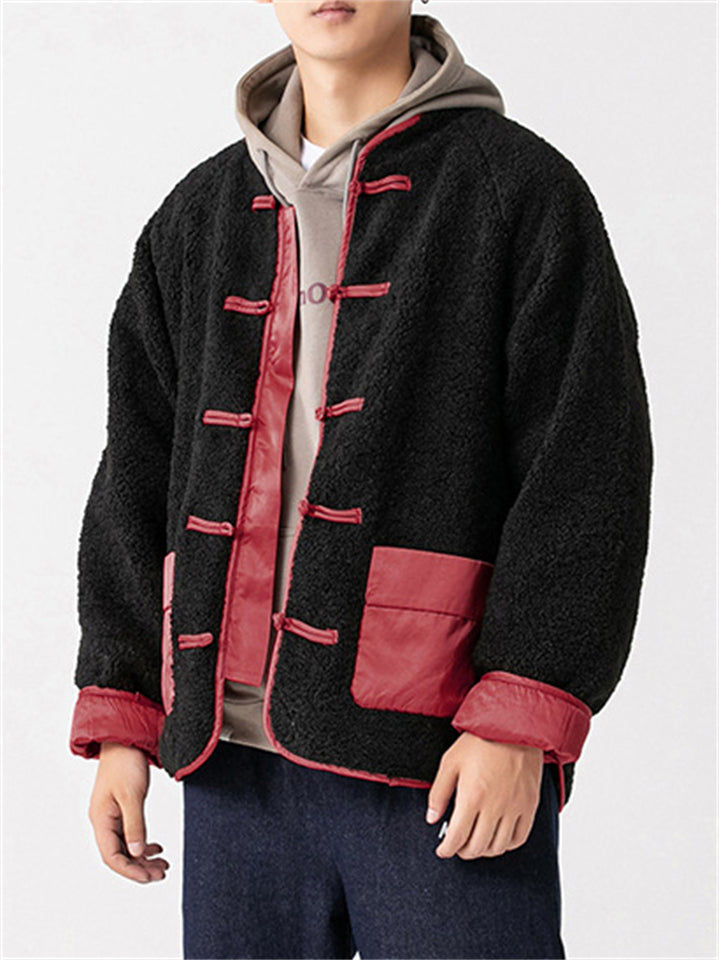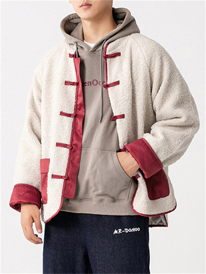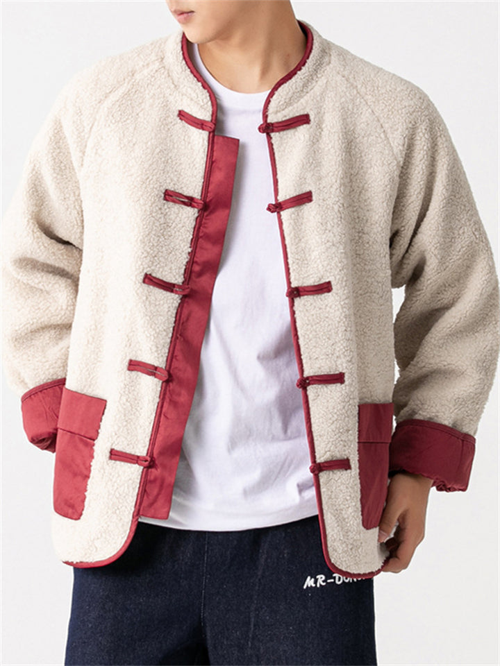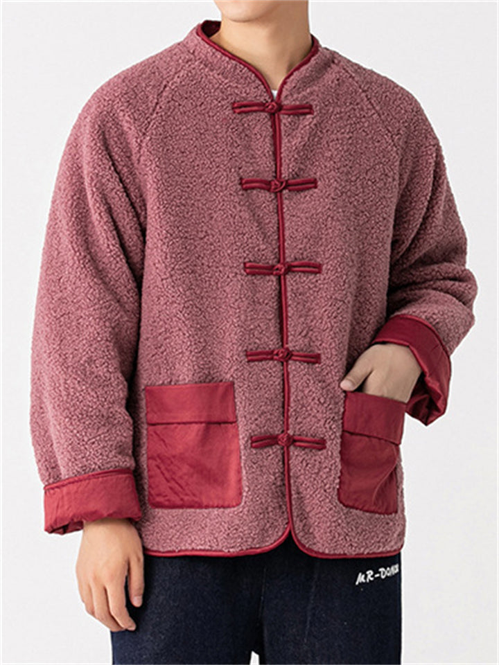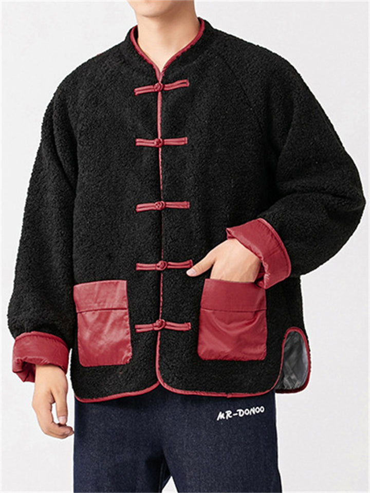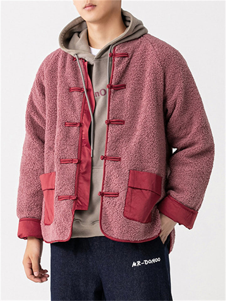 Men's Winter Vintage Solid Color Tangsuit Padded Quilted Coats