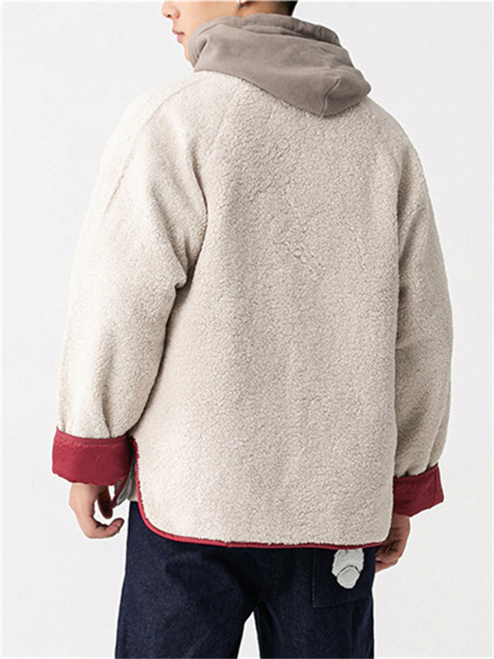 Men's Winter Fleeced Solid Color Lapel Pockets Cargo Coats
