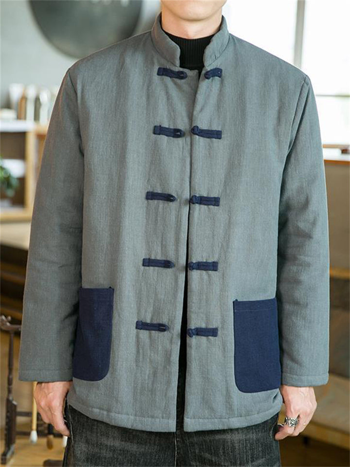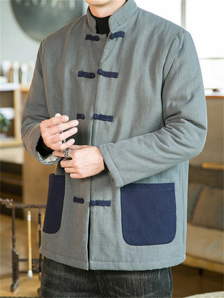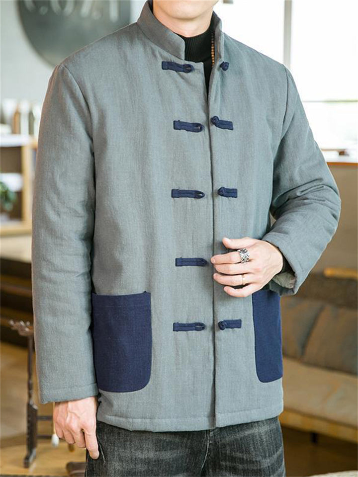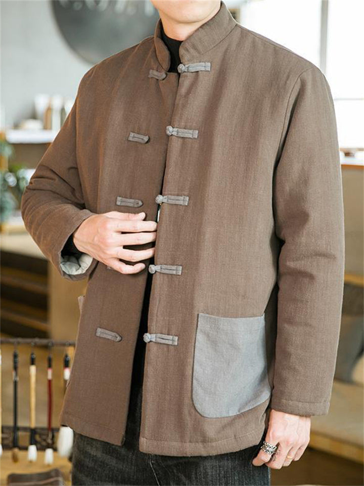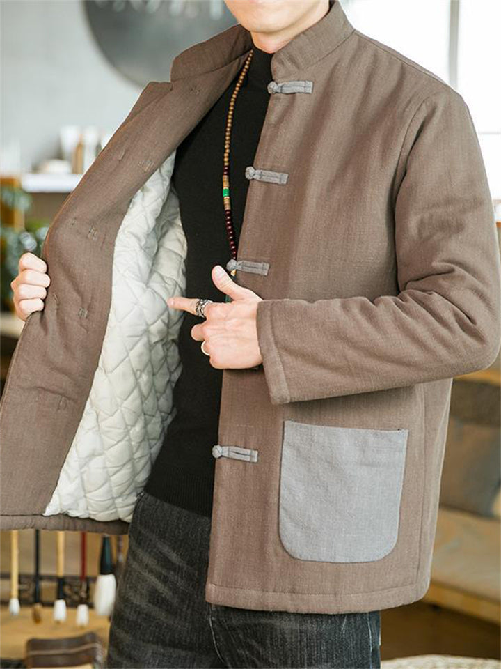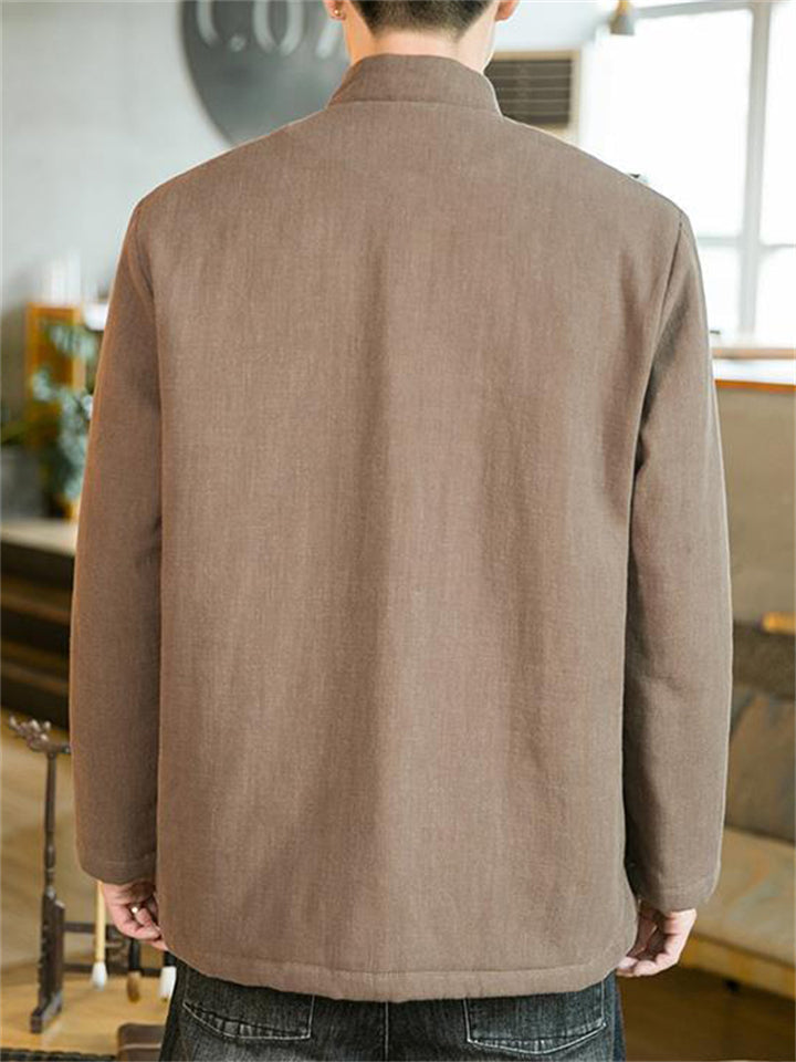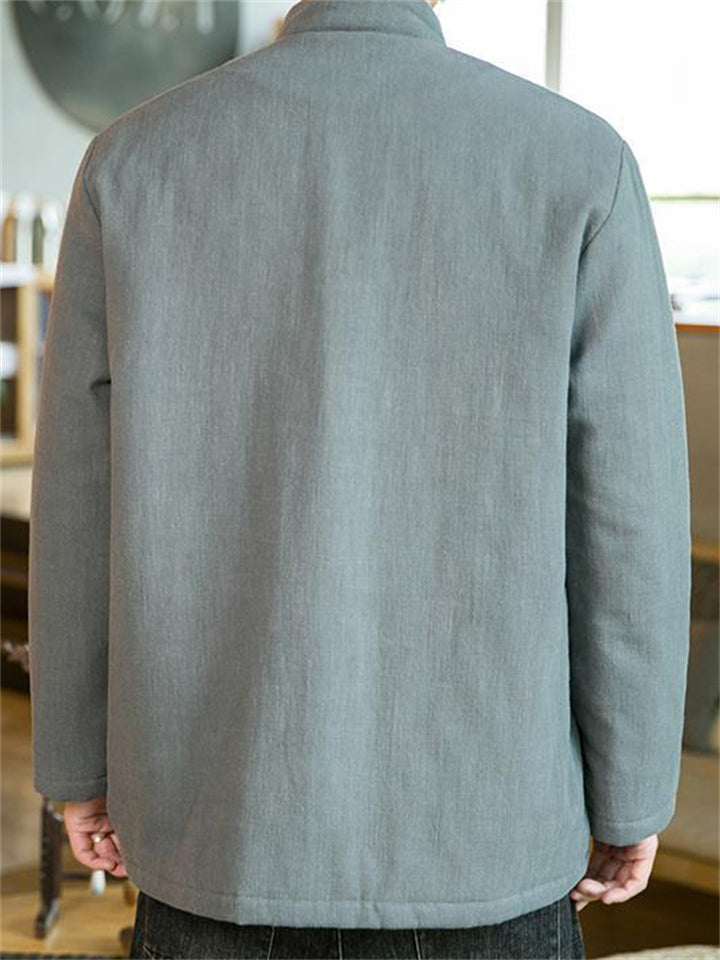 Men's Winter Vintage Solid Color Tangsuit Padded Quilted Coats
