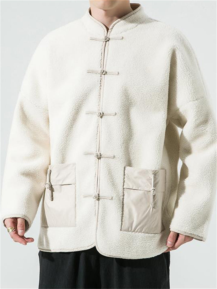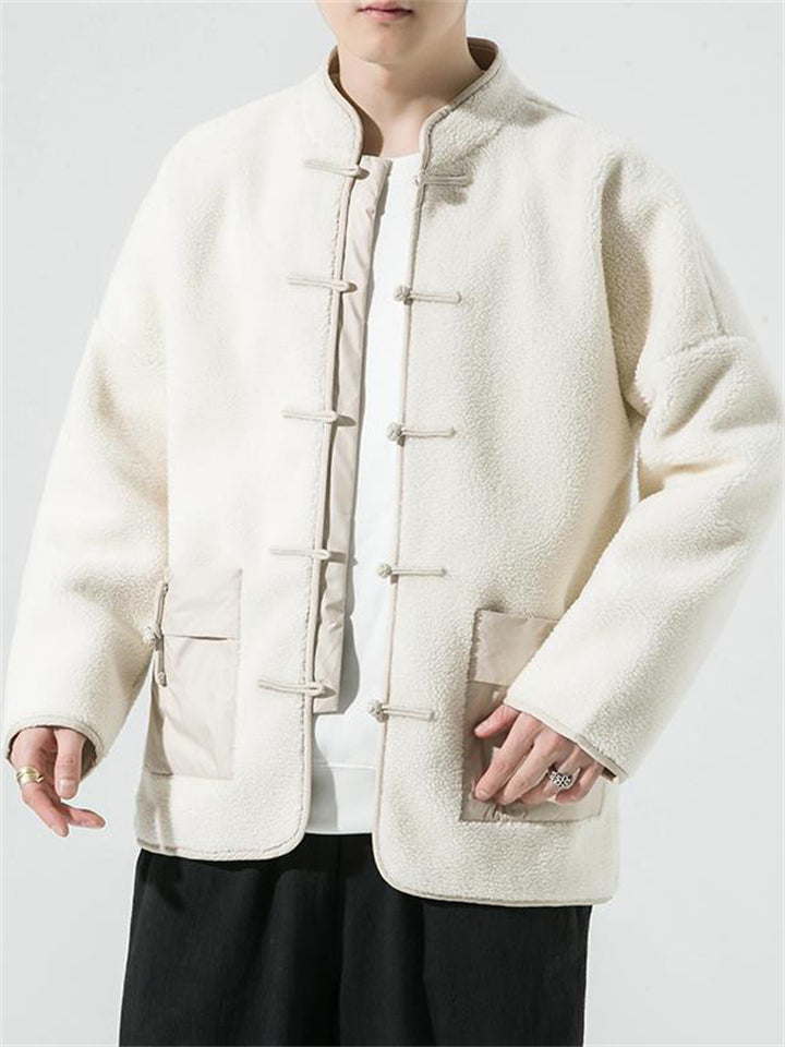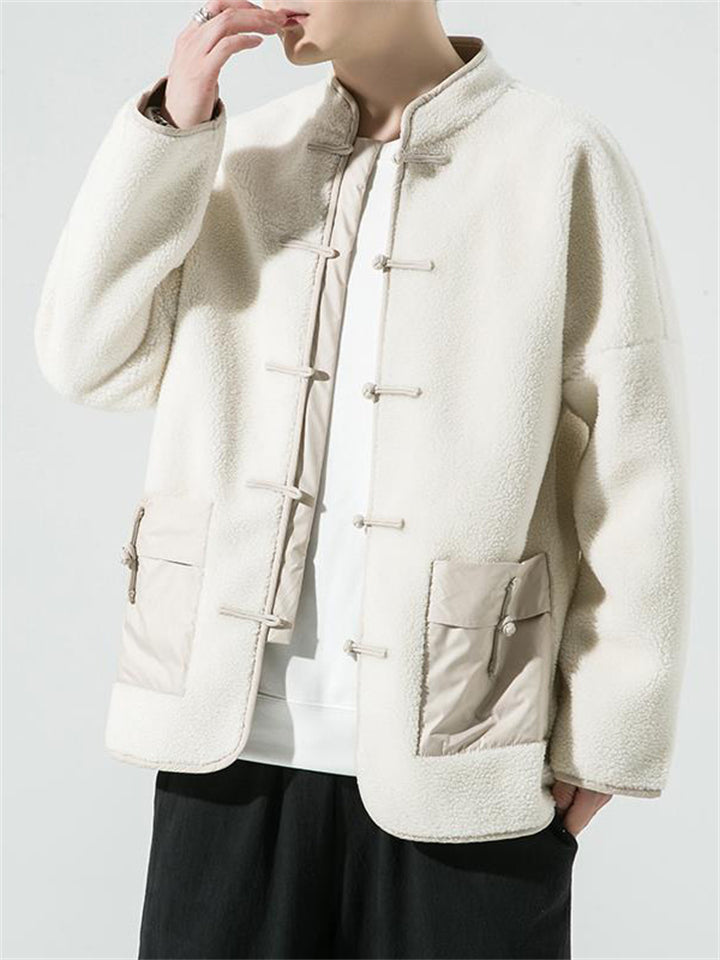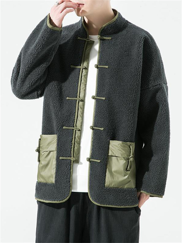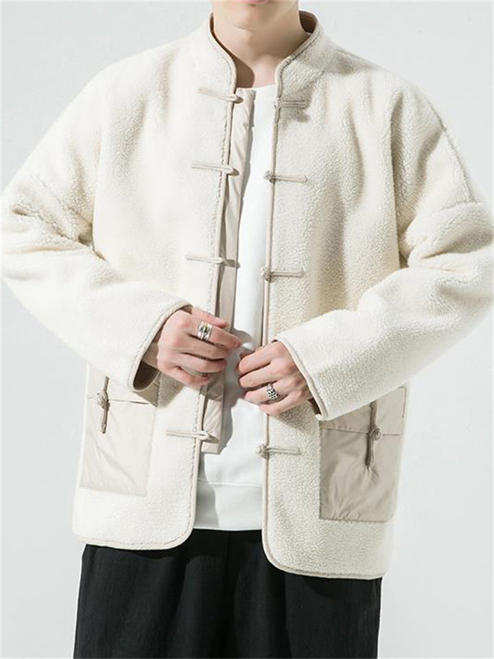 Male Patchwork Artificial Lamb Wool Tang Suit Coat