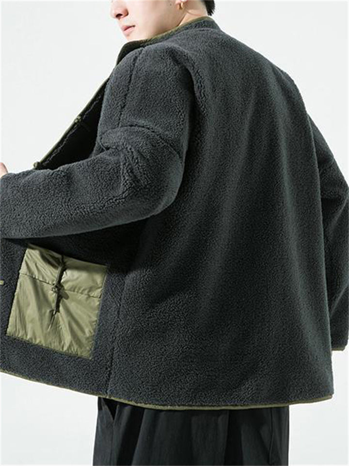 Men's Winter Fleeced Solid Color Lapel Pockets Cargo Coats