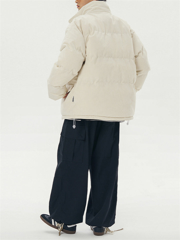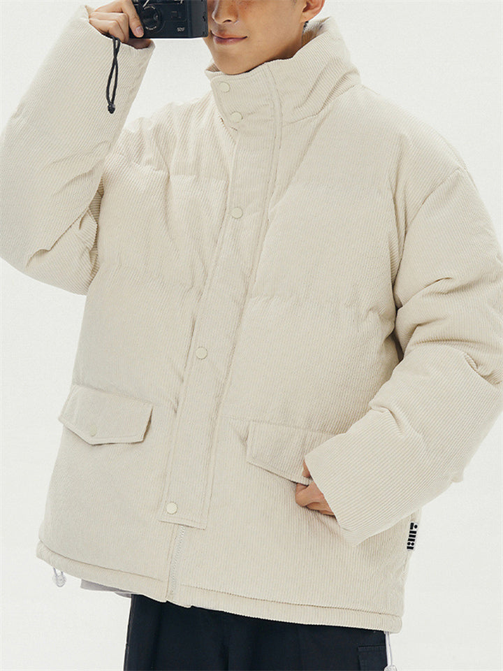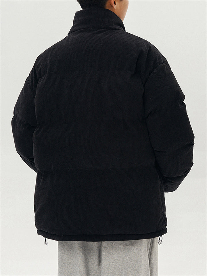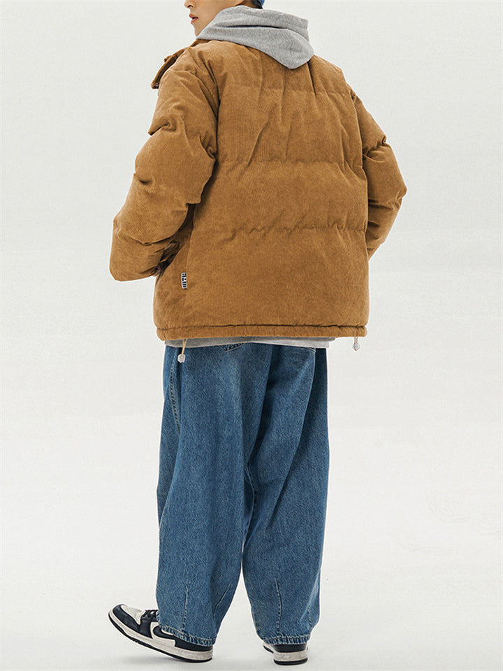 Male Solid Puffer Jackets Corduroy Cotton-padded Coats