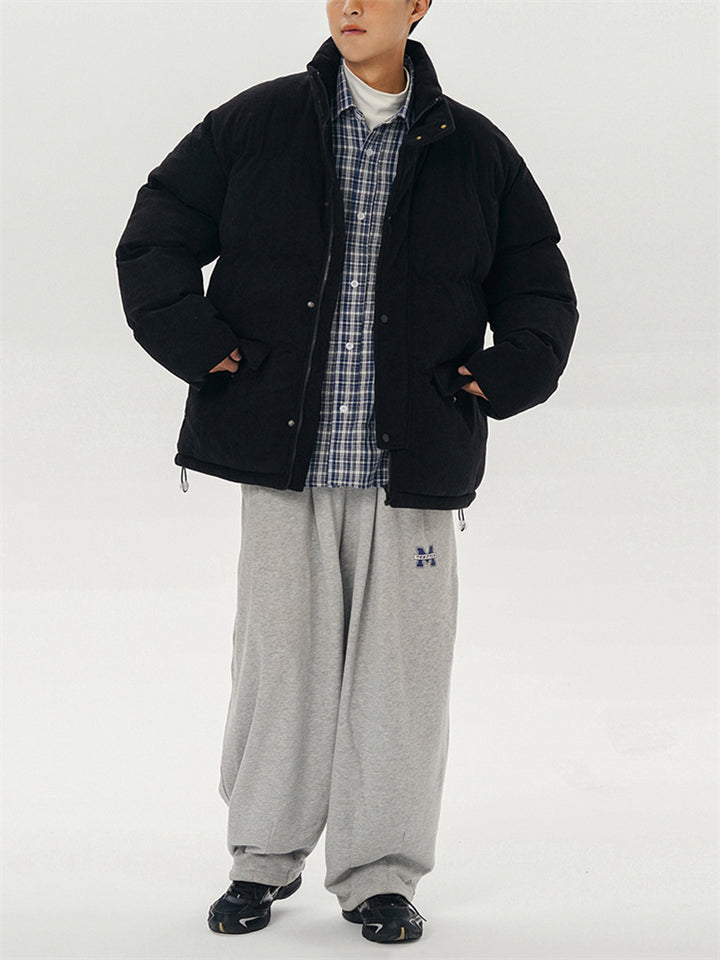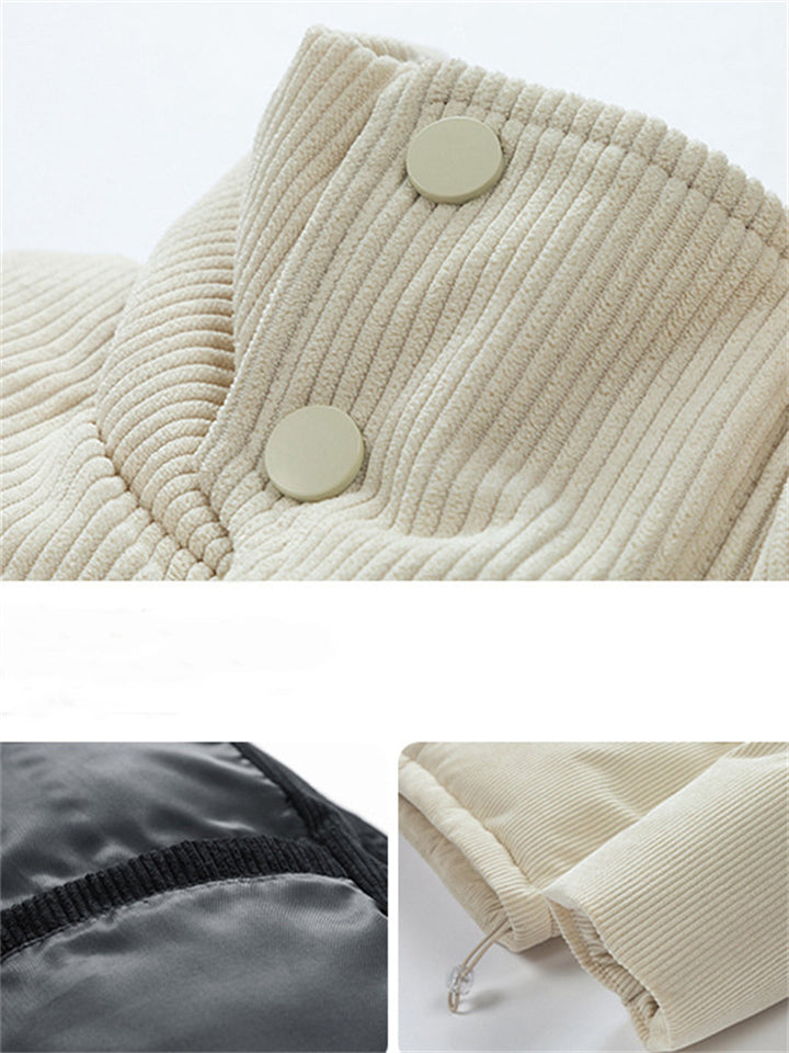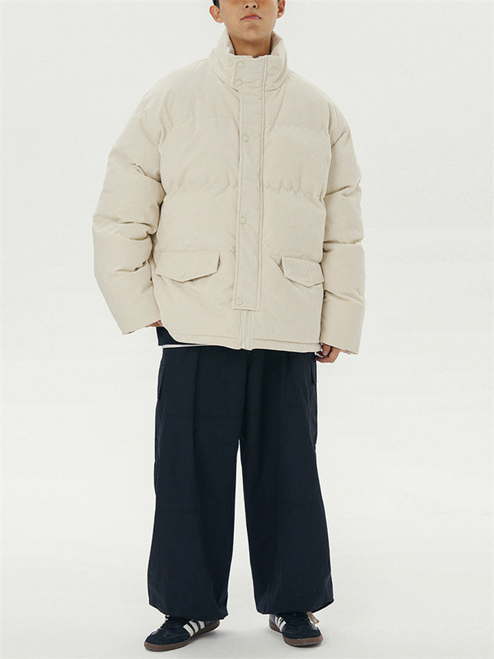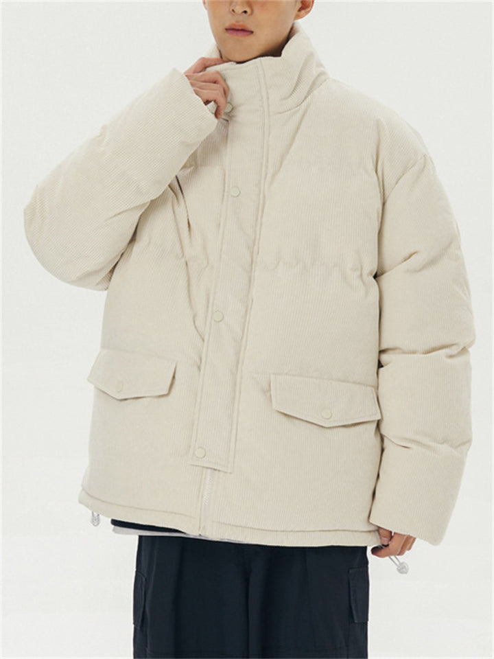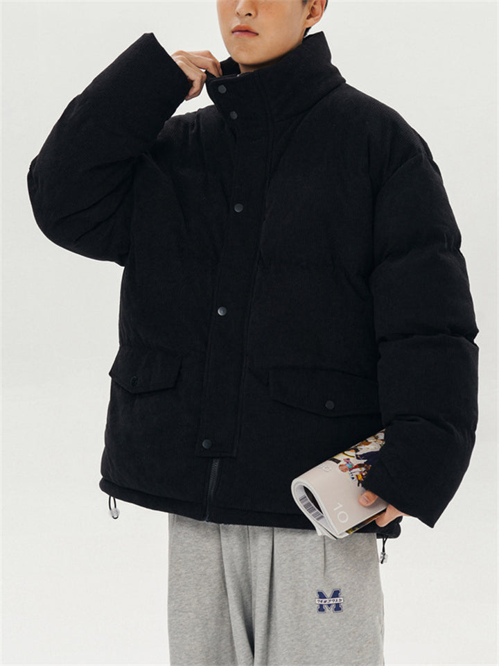Male Solid Puffer Jackets Corduroy Cotton-padded Coats