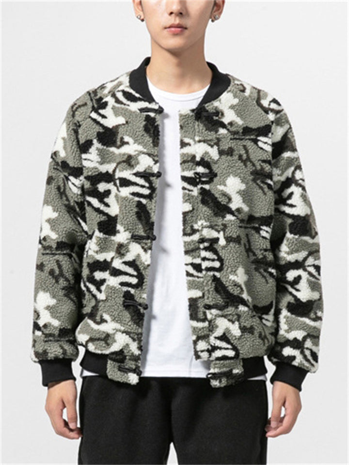 Men's Winter Fleeced Solid Color Lapel Pockets Cargo Coats