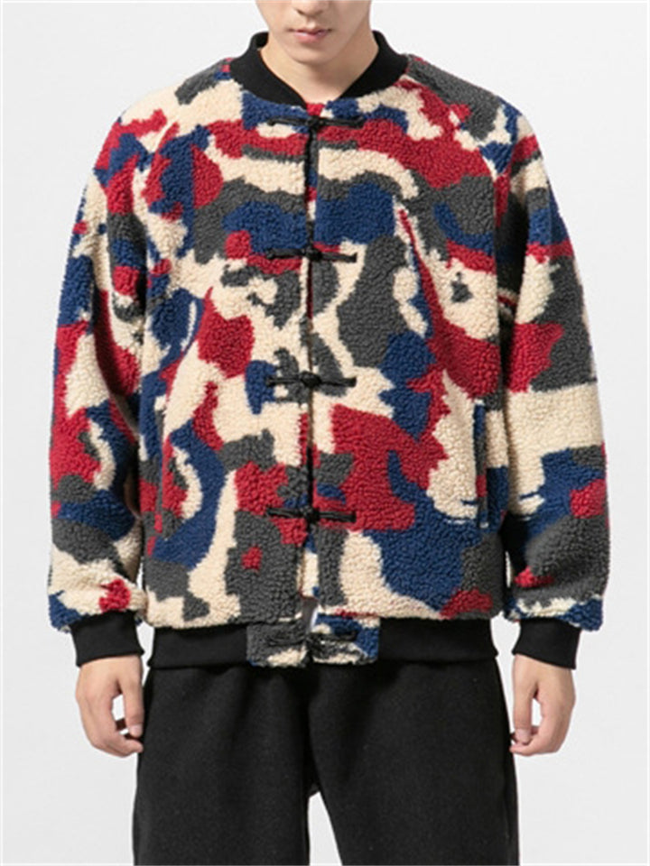 Men's Winter Thicken Chinese Style Printed Frog Button Tangsuit Coats