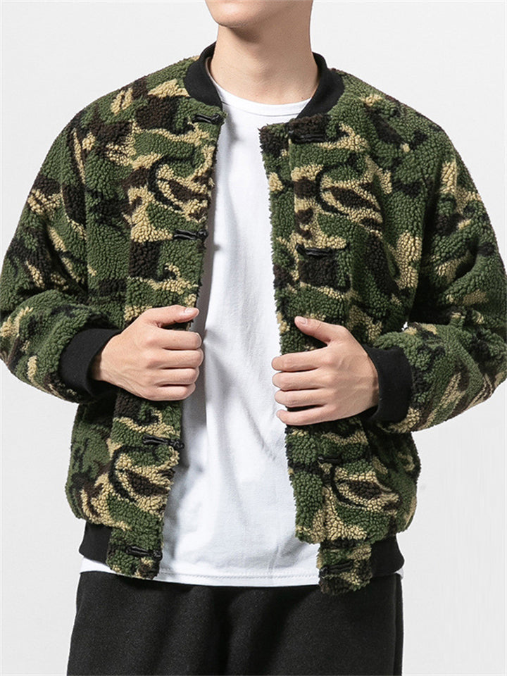 Men's Winter Vintage Solid Color Tangsuit Padded Quilted Coats