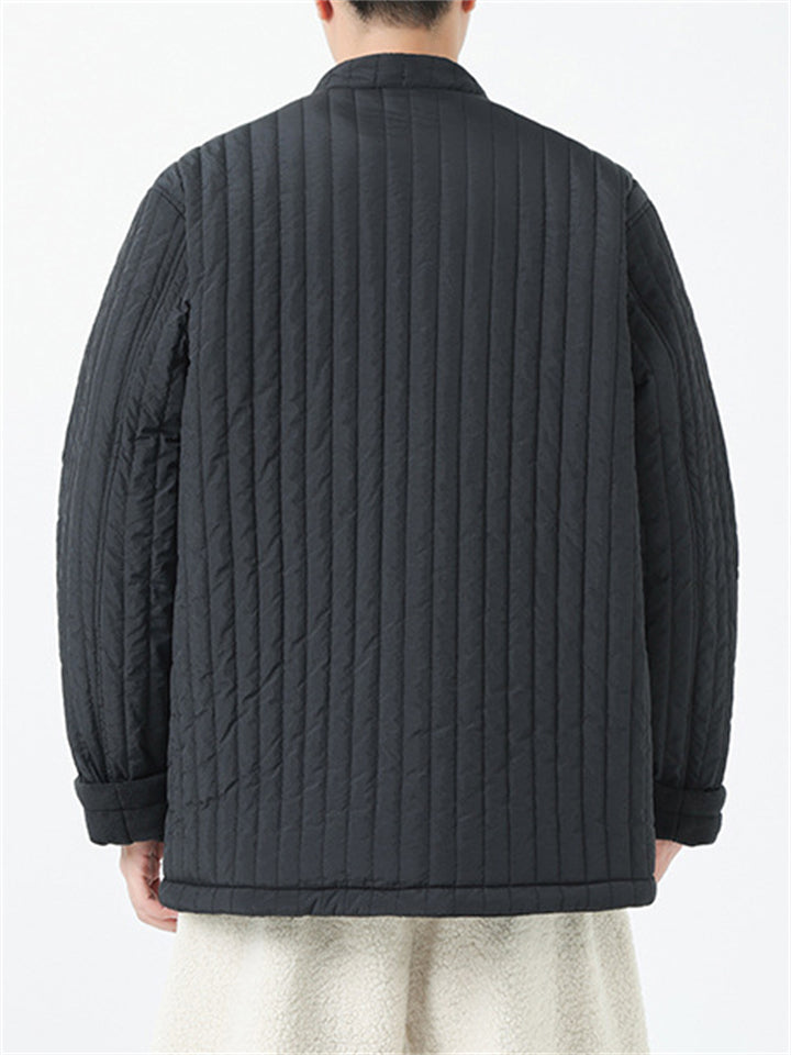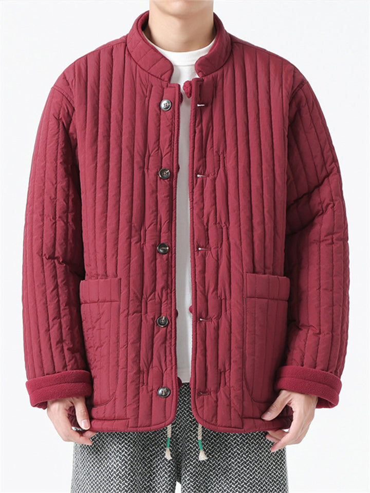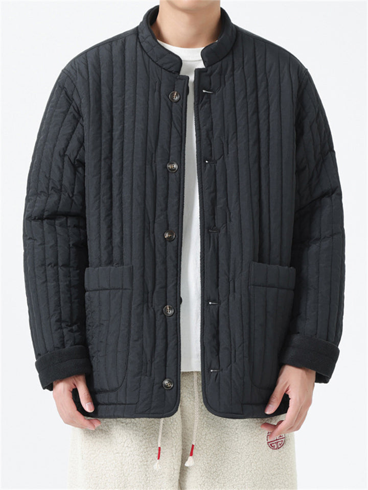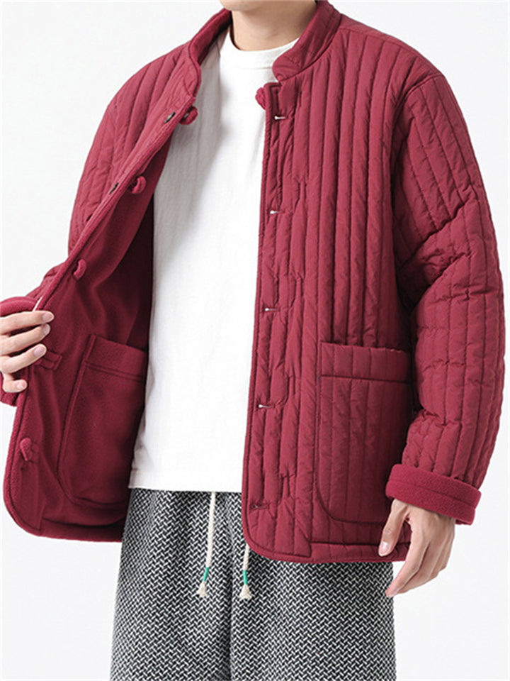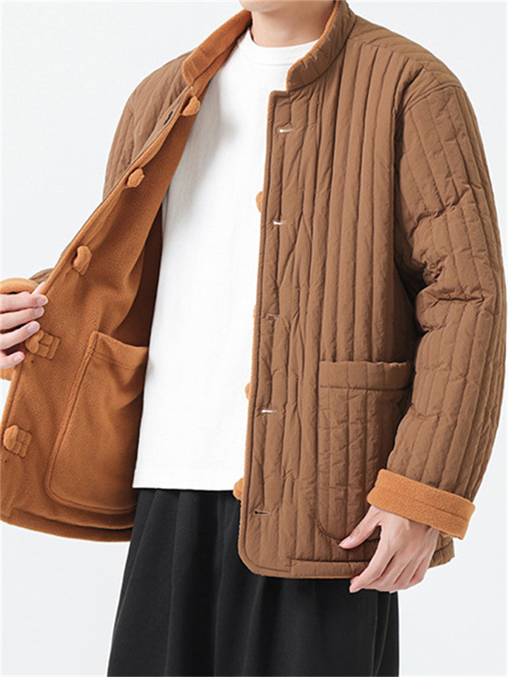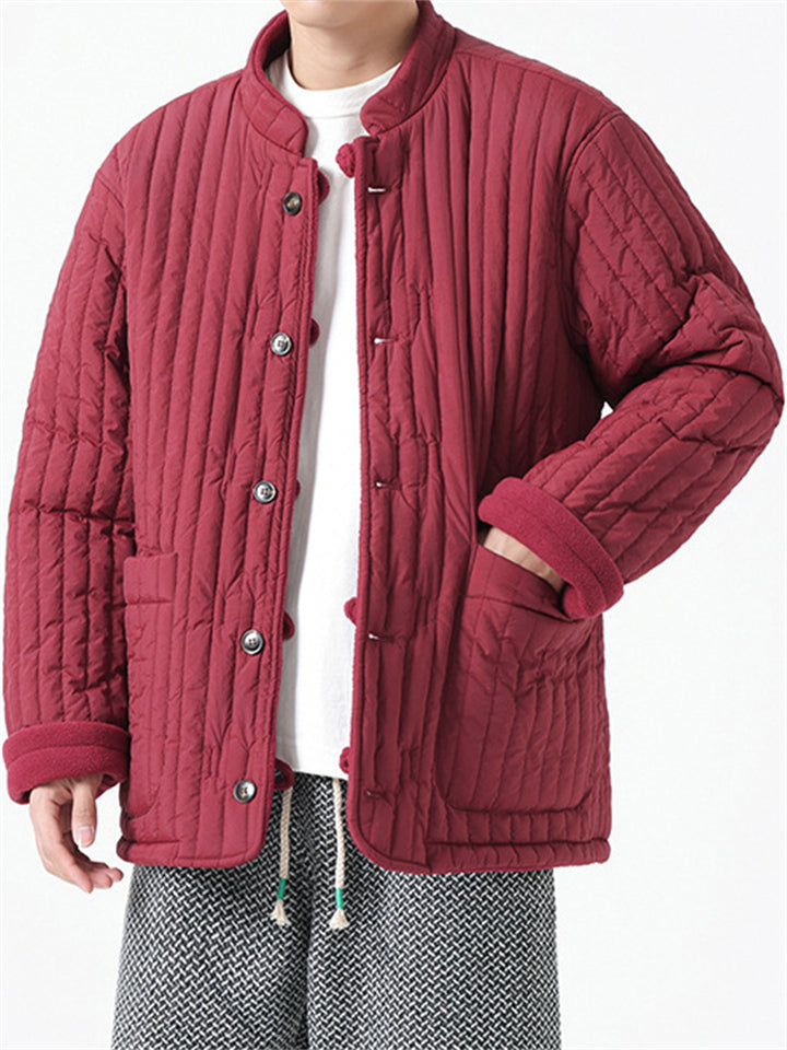 Men's Winter Vintage Solid Color Tangsuit Padded Quilted Coats