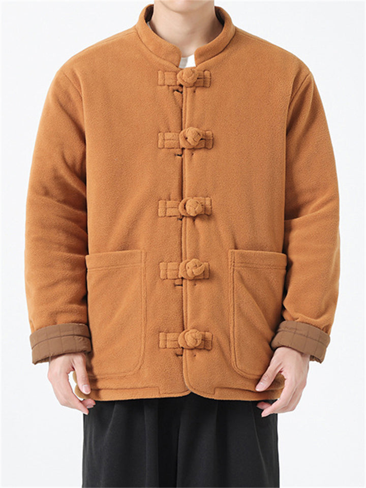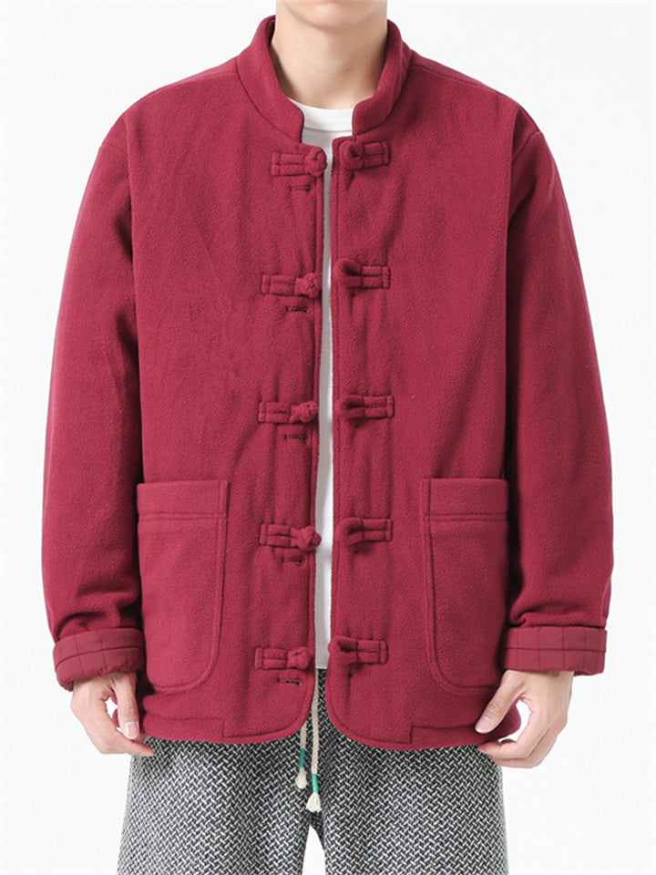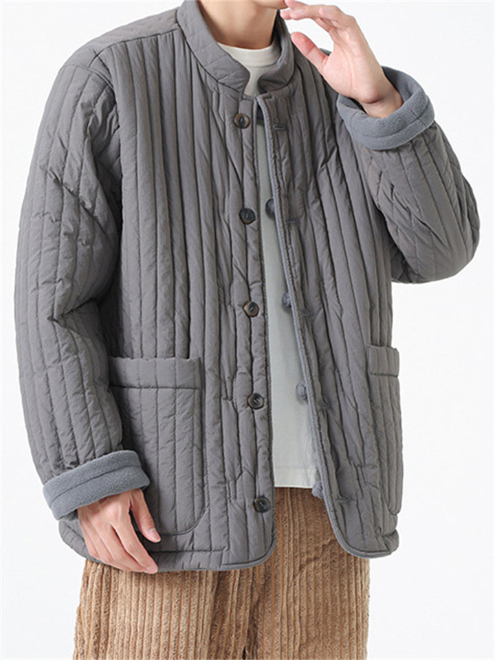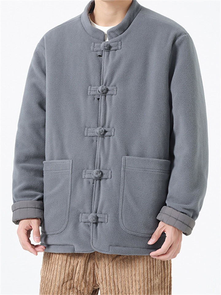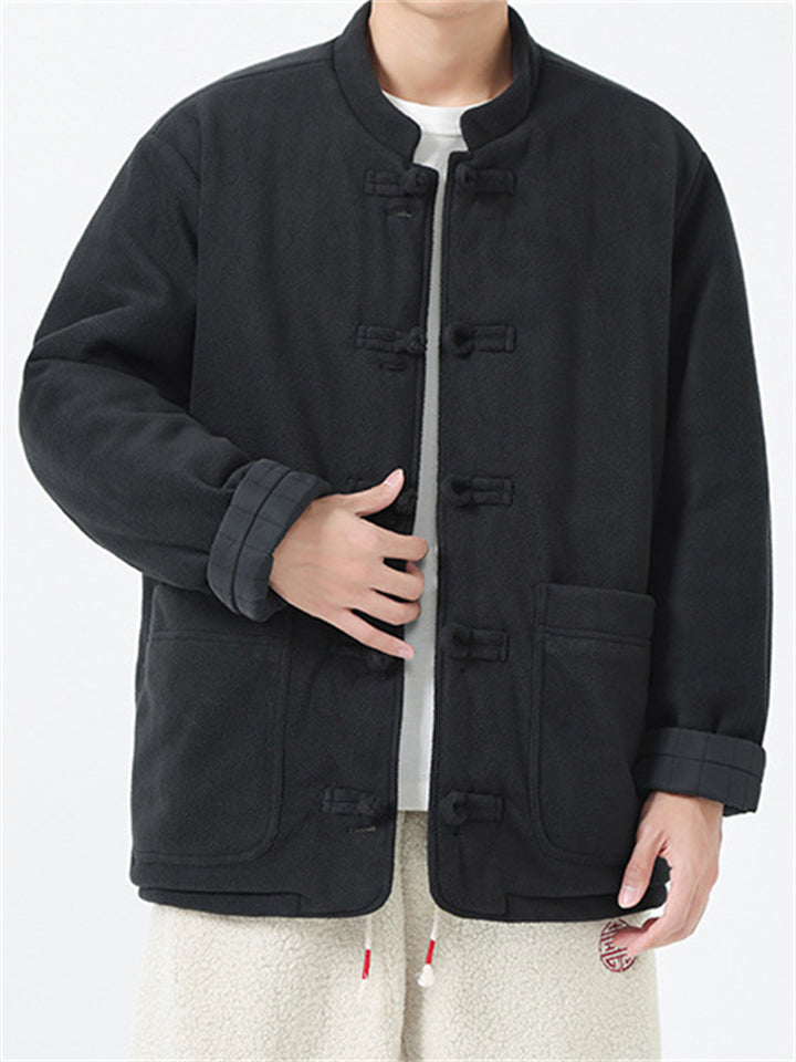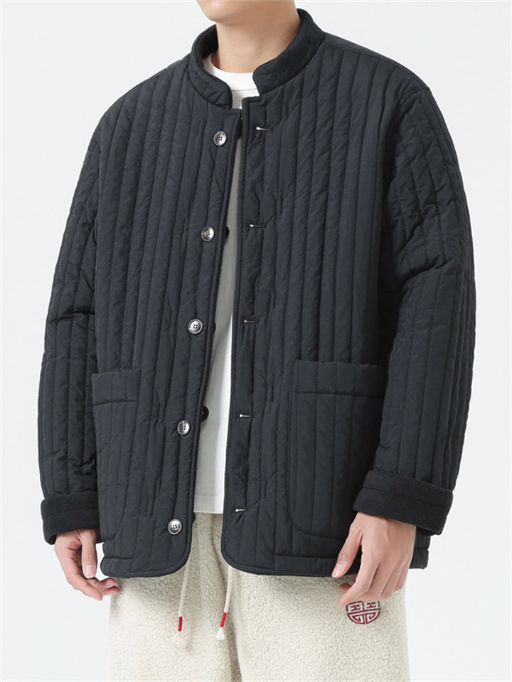Men's Winter Vintage Solid Color Tangsuit Padded Quilted Coats