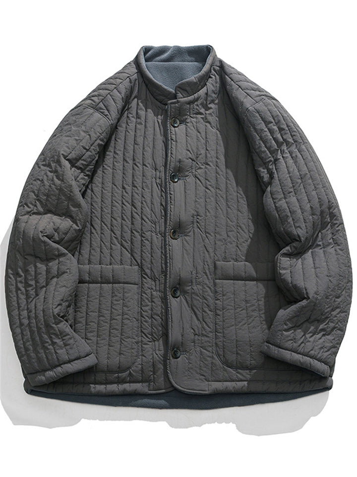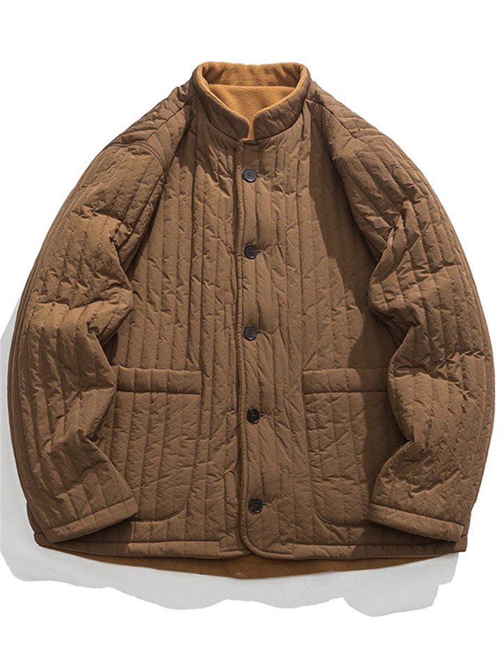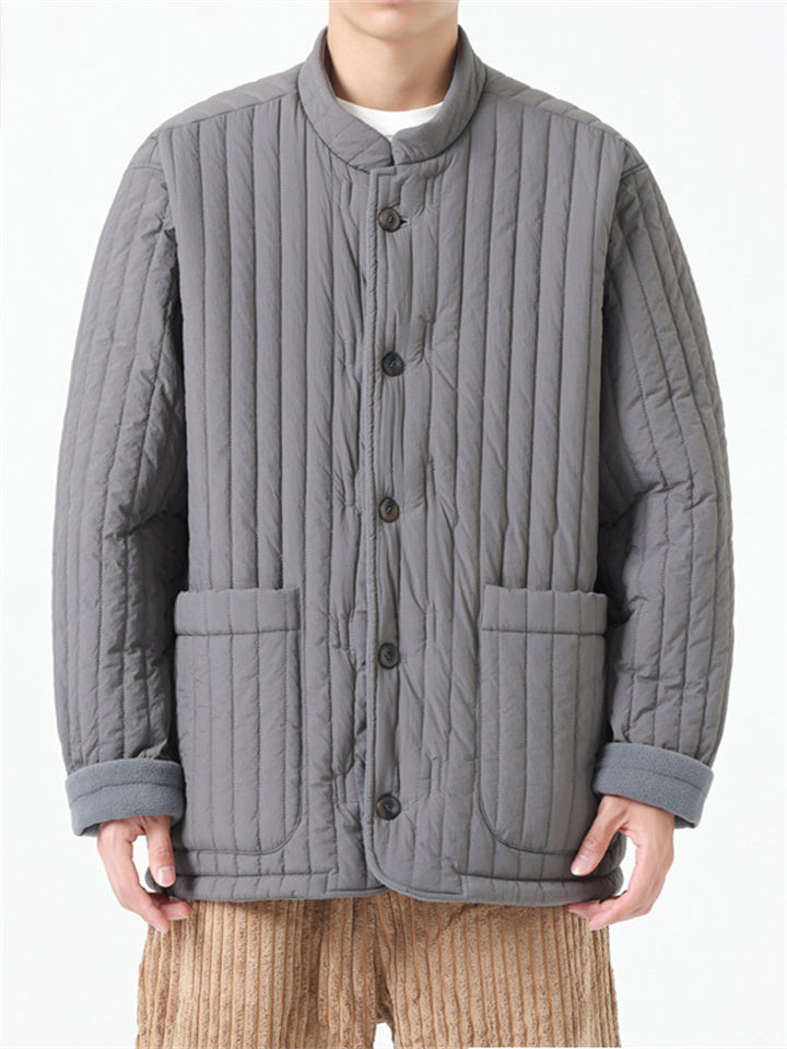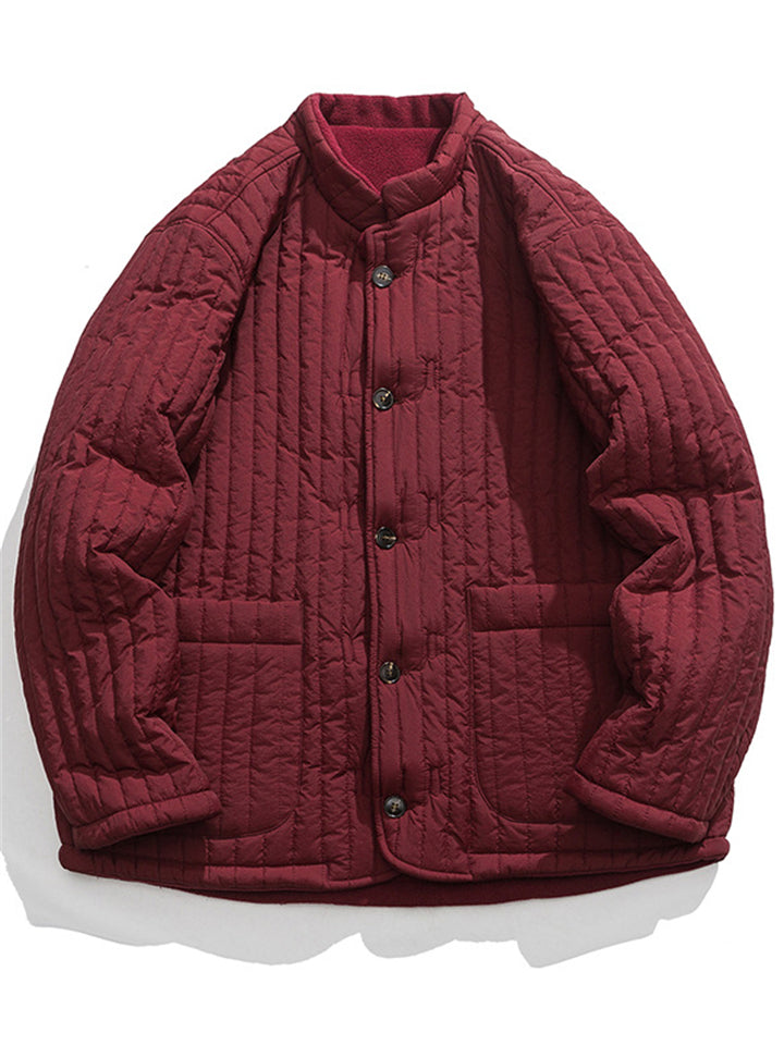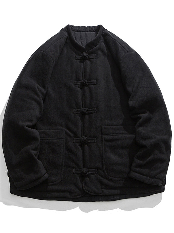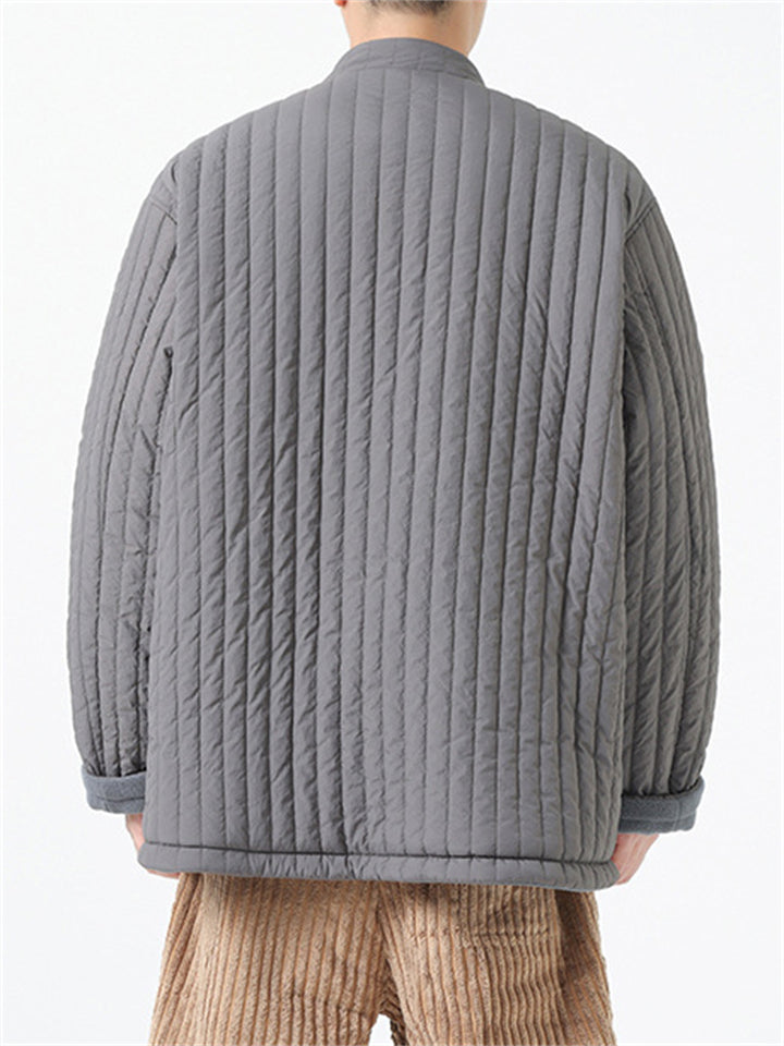 Men's Winter Vintage Solid Color Tangsuit Padded Quilted Coats