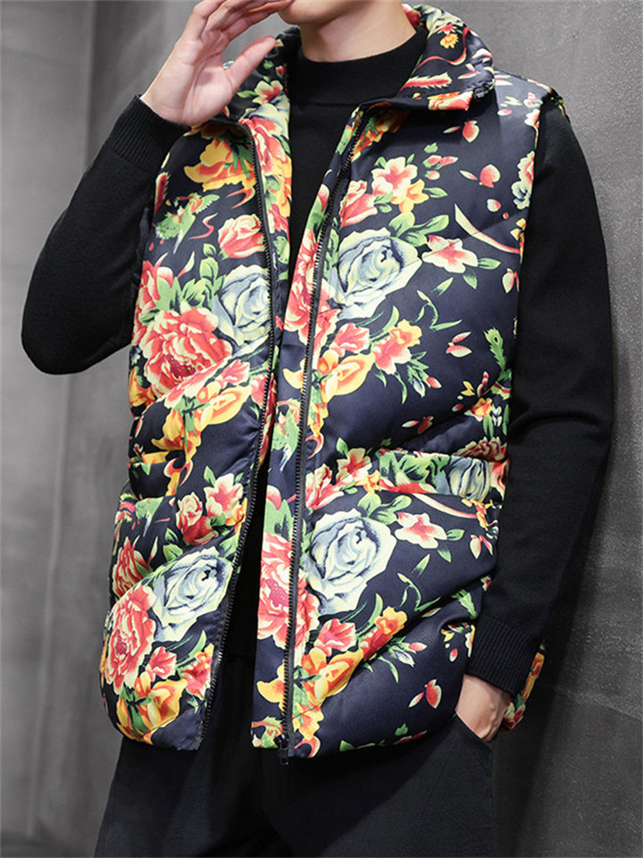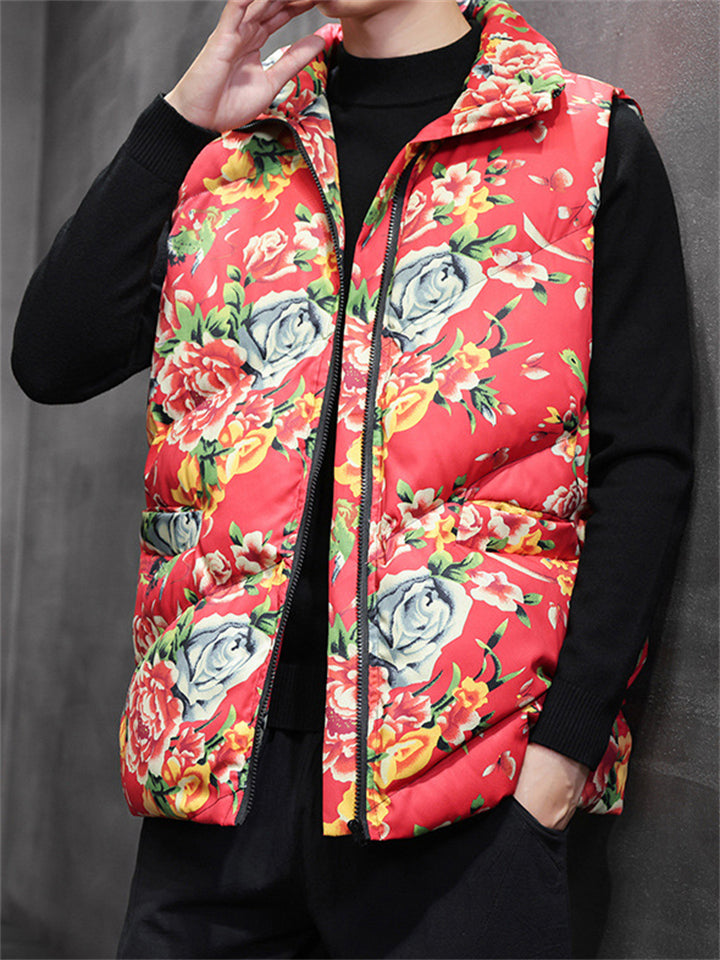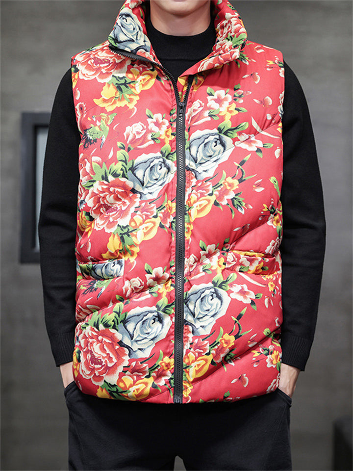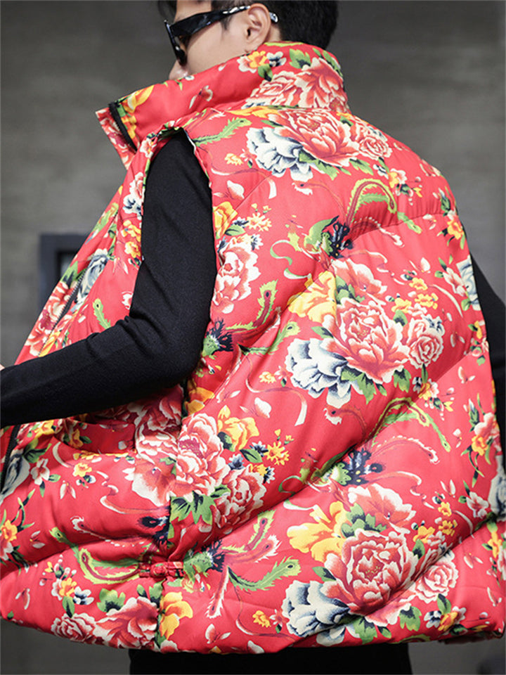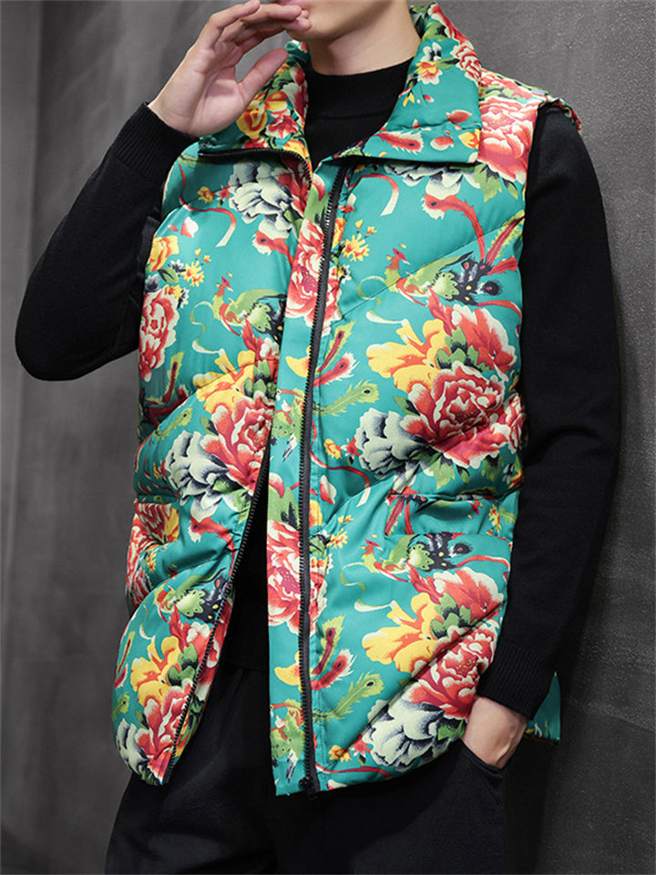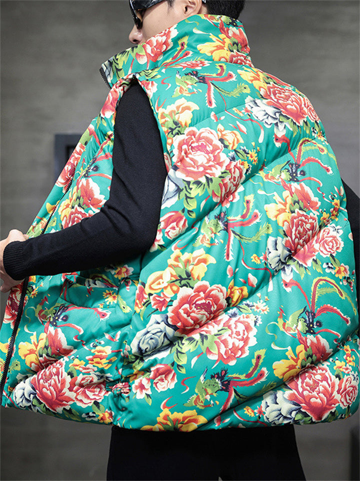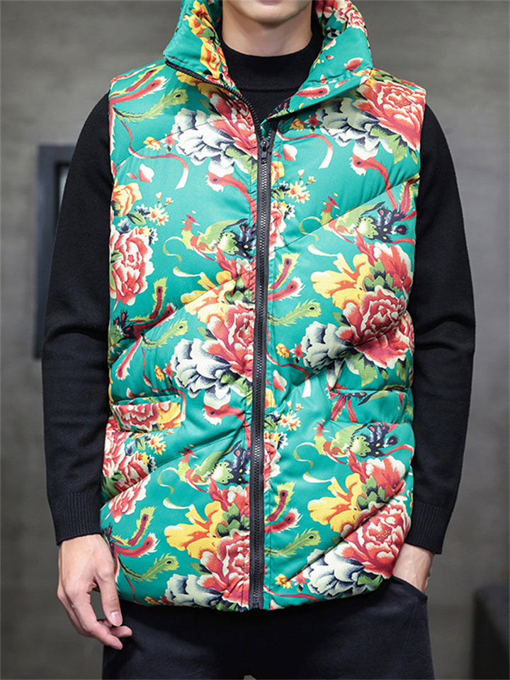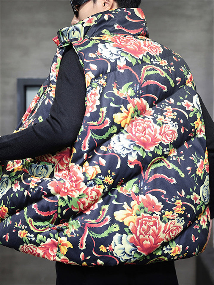 Men's Winter Chinese Style Floral Printed Cotton-padded Tangsuit Coat