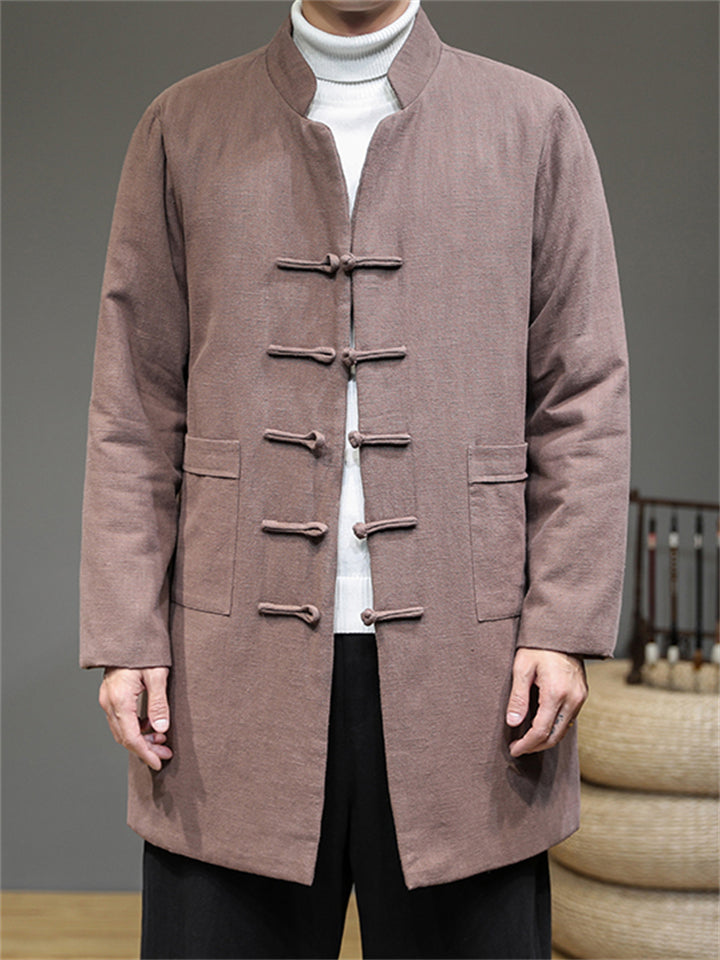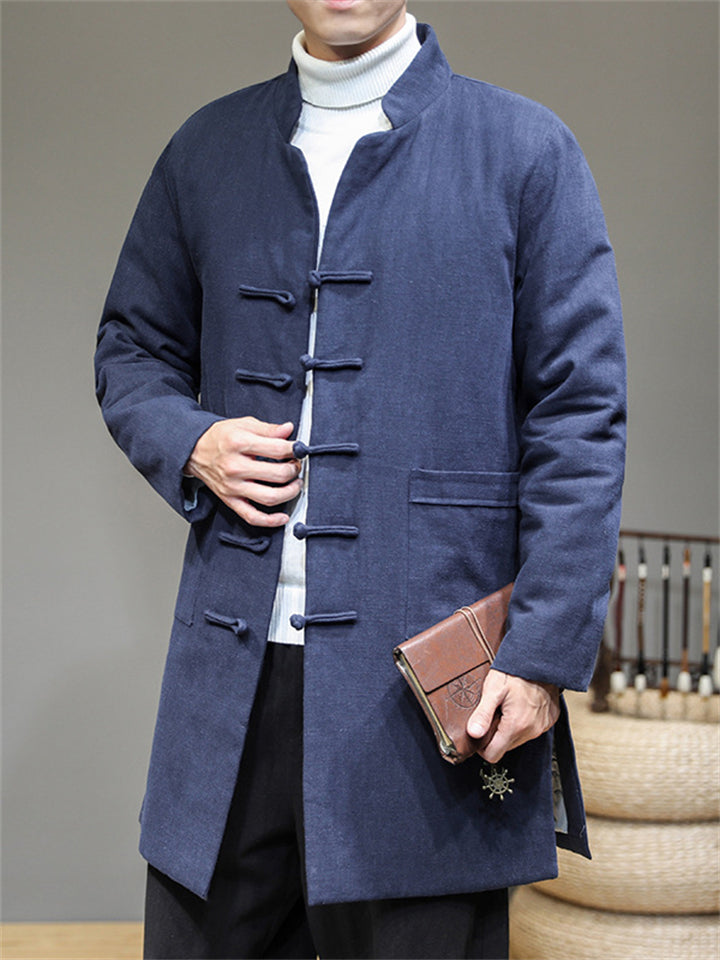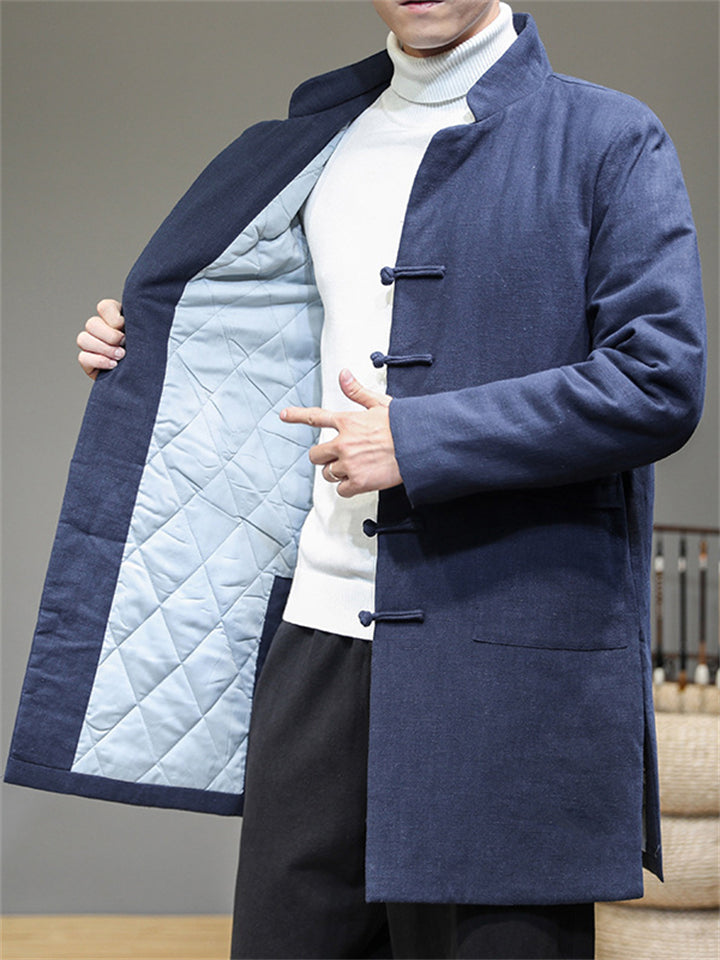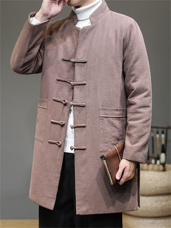 Men's Winter Vintage Solid Color Tangsuit Padded Quilted Coats