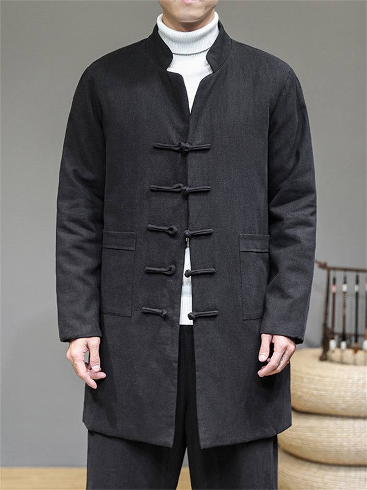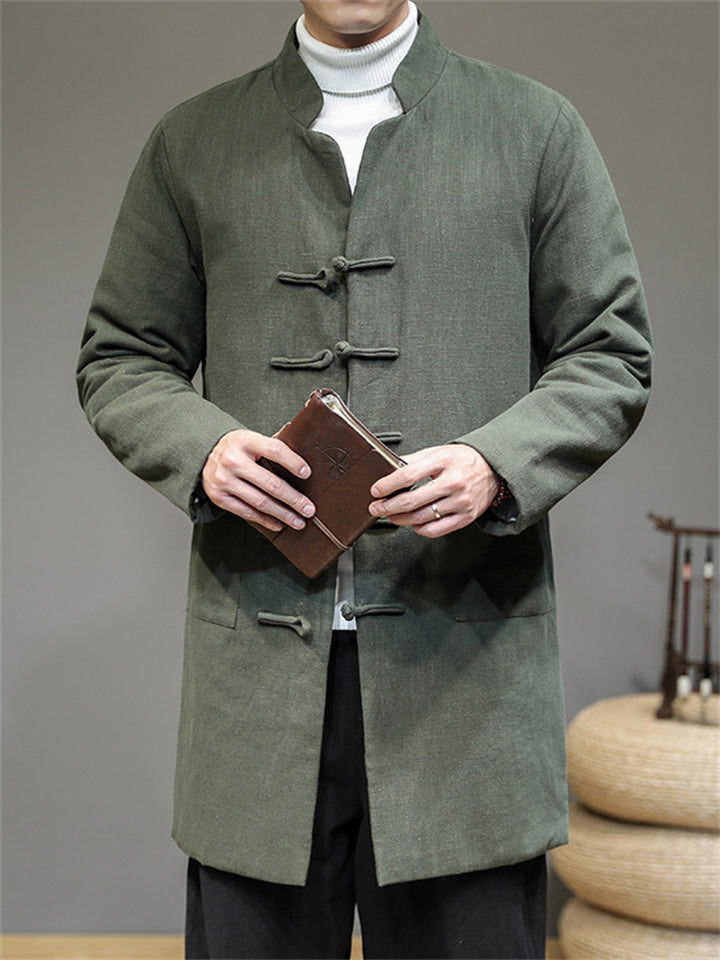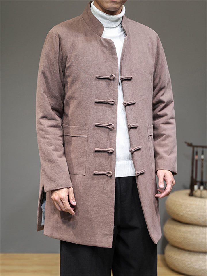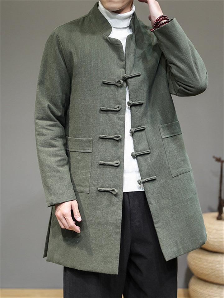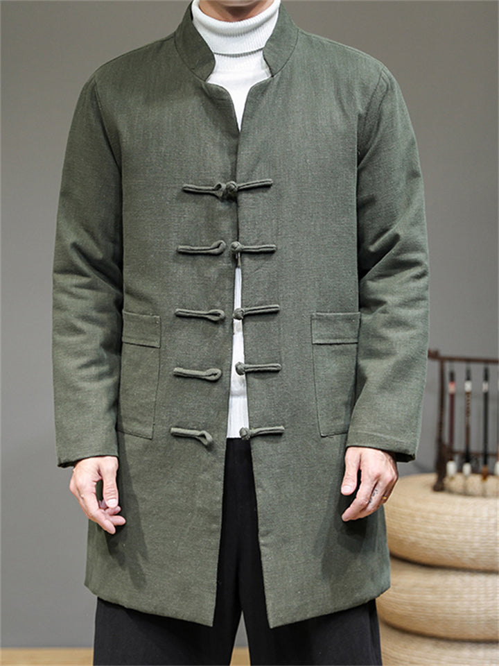 Men's Winter Vintage Solid Color Tangsuit Padded Quilted Coats