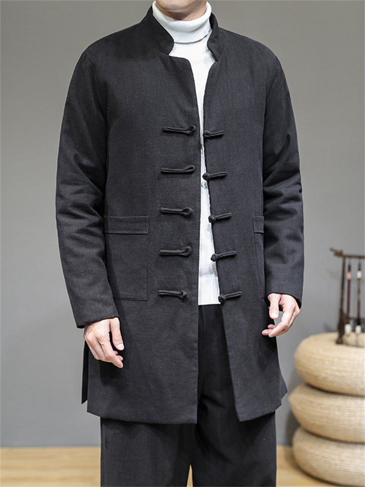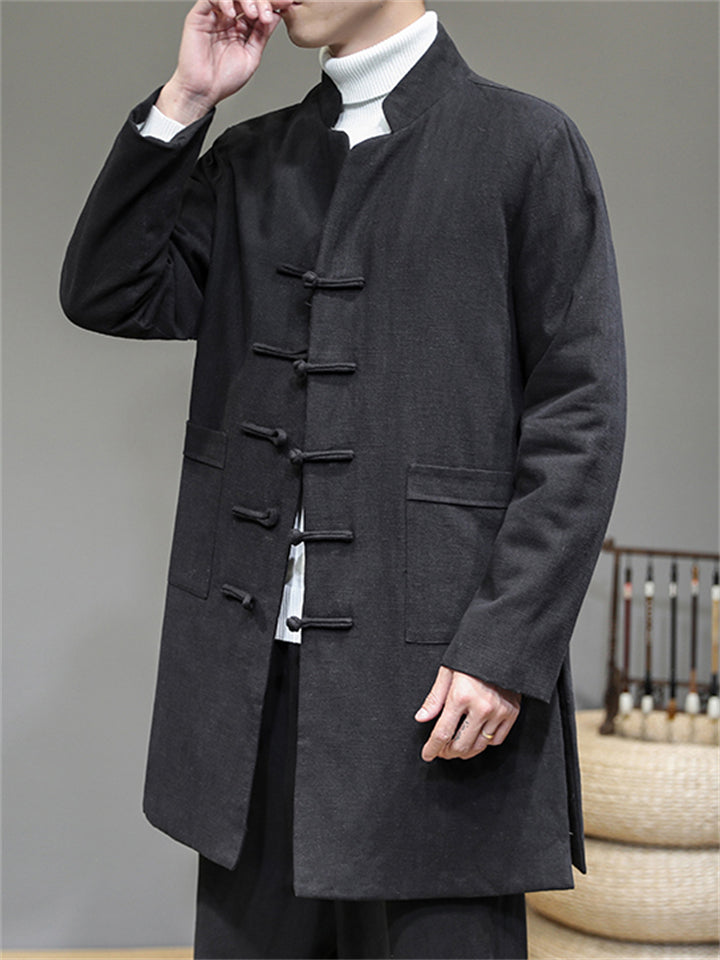 Men's Graceful Retro Solid Color Cotton Midi Pattern Coats