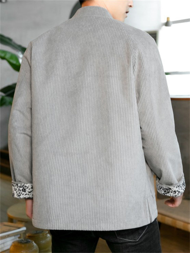 Men's Chinese Style Casual Solid Color Jacquard Cardigan Coats