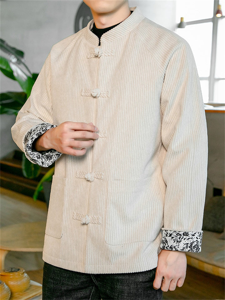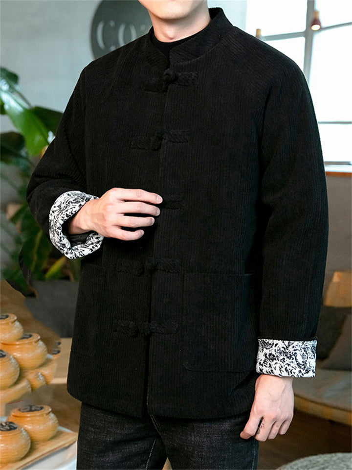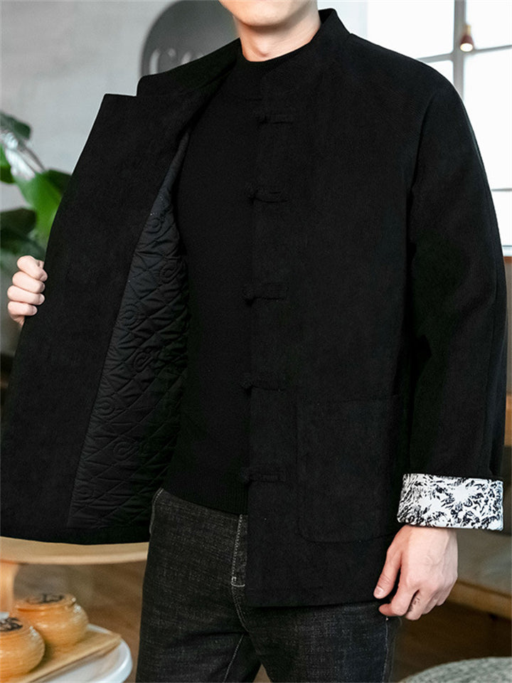 Men's Winter Vintage Solid Color Tangsuit Padded Quilted Coats