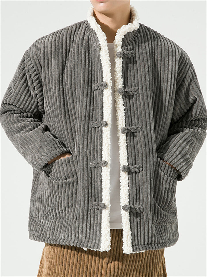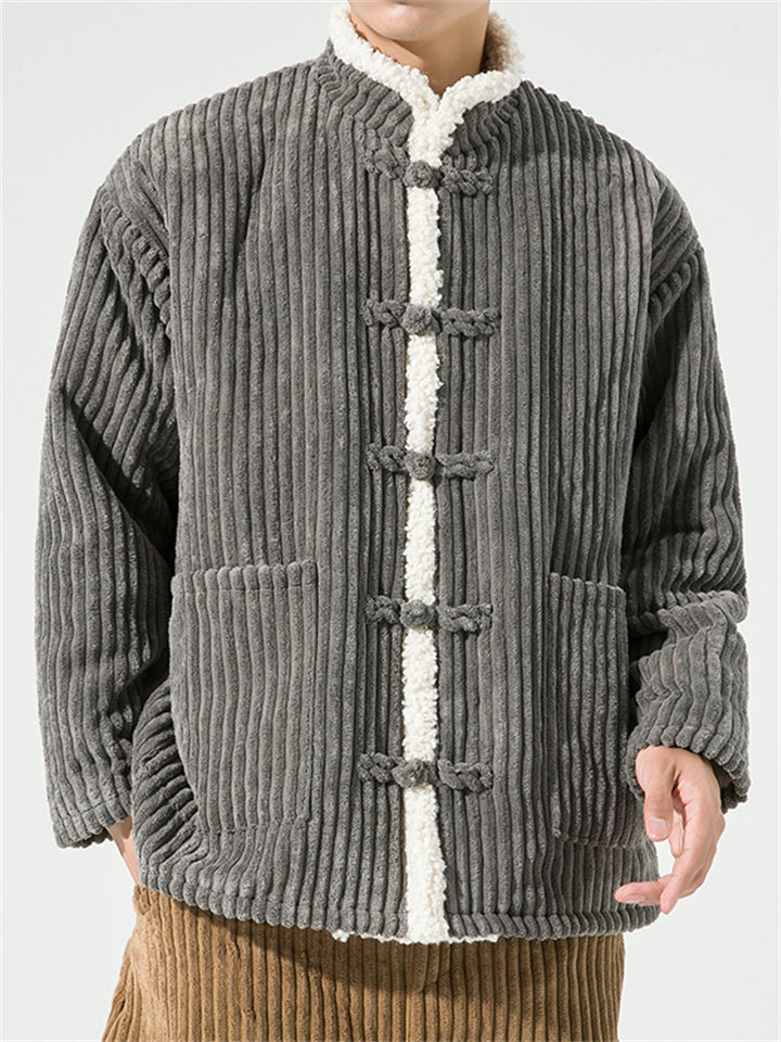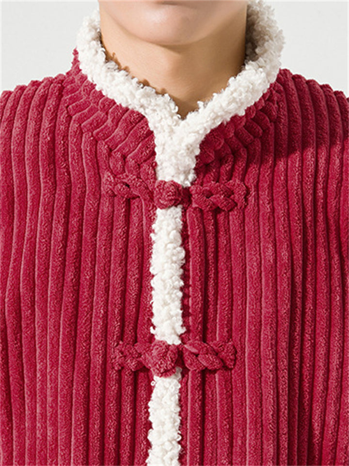 Men's Chinese Style Tang Suit Fleece Corduroy Vest