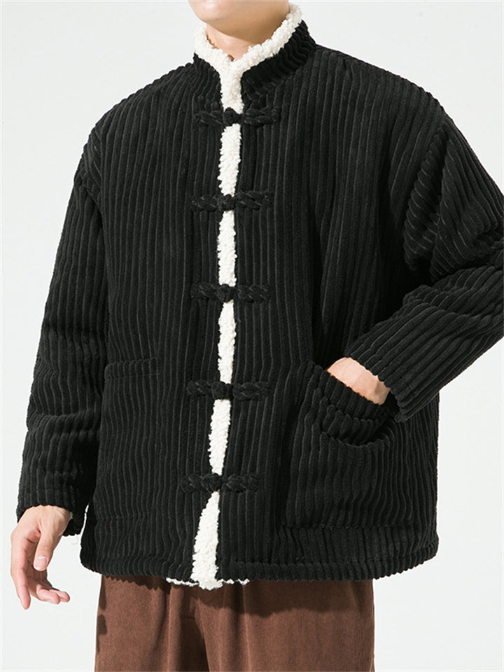 Men's Winter Vintage Solid Color Tangsuit Padded Quilted Coats