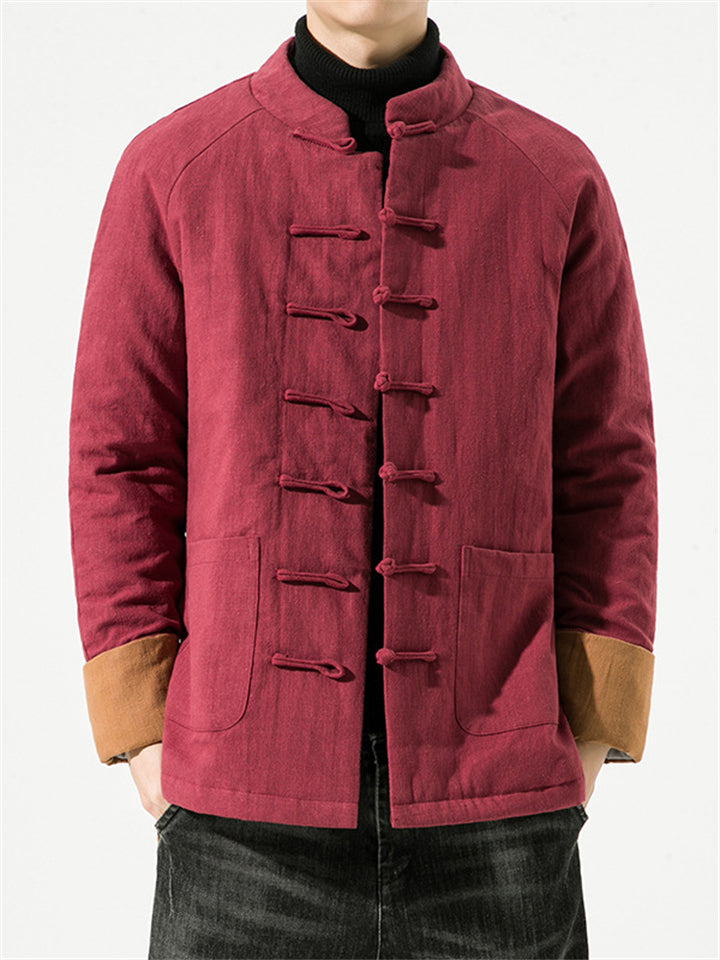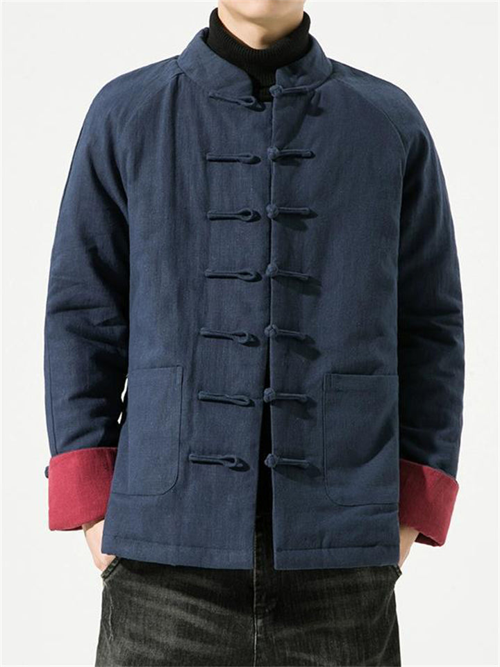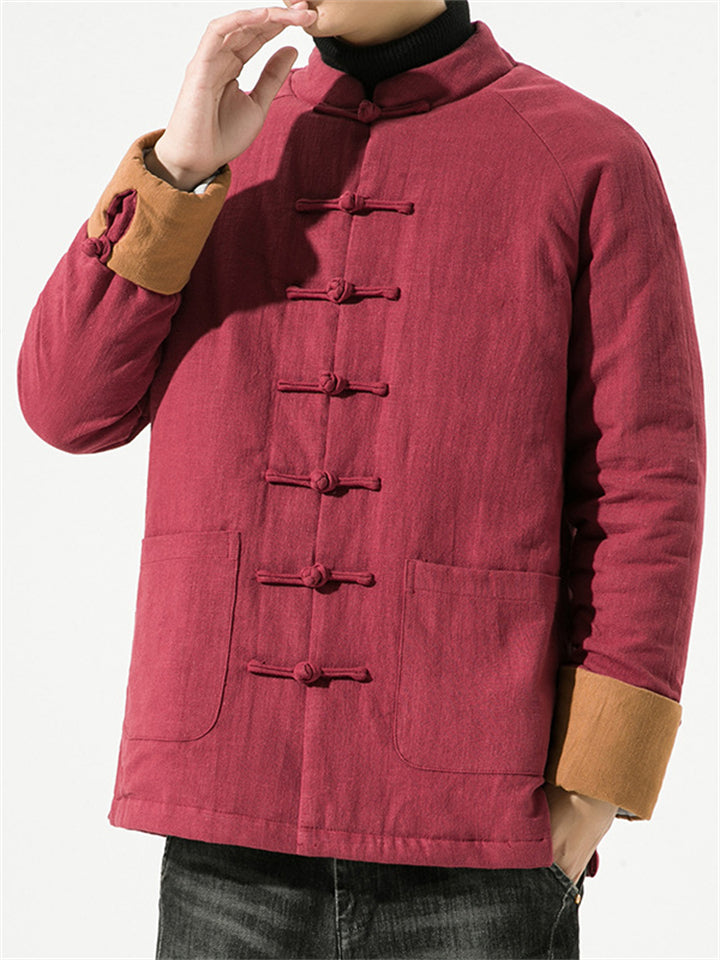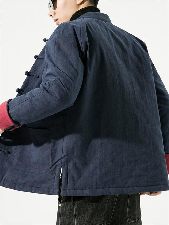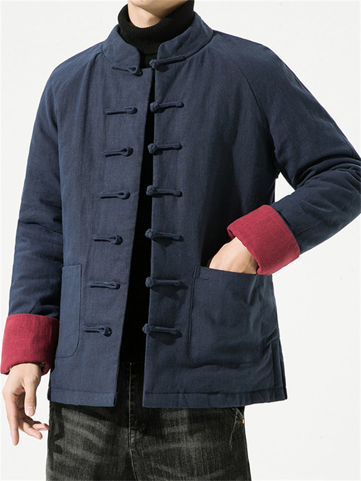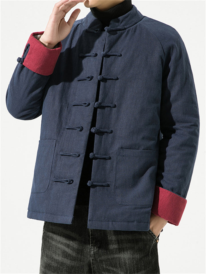 Men's Oriental Style Contrast Color Thick Cotton Coats