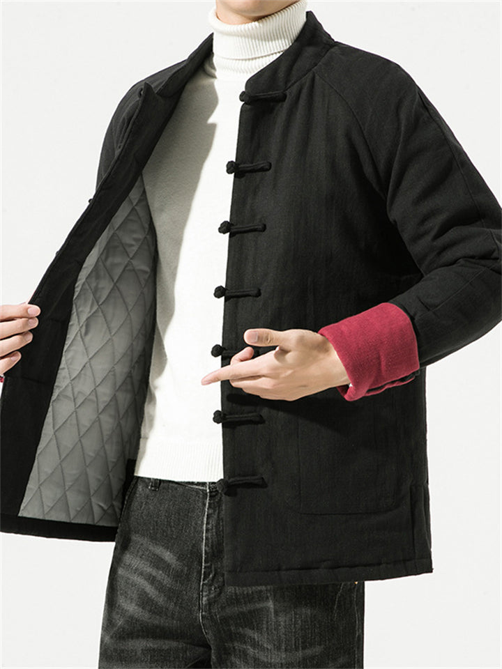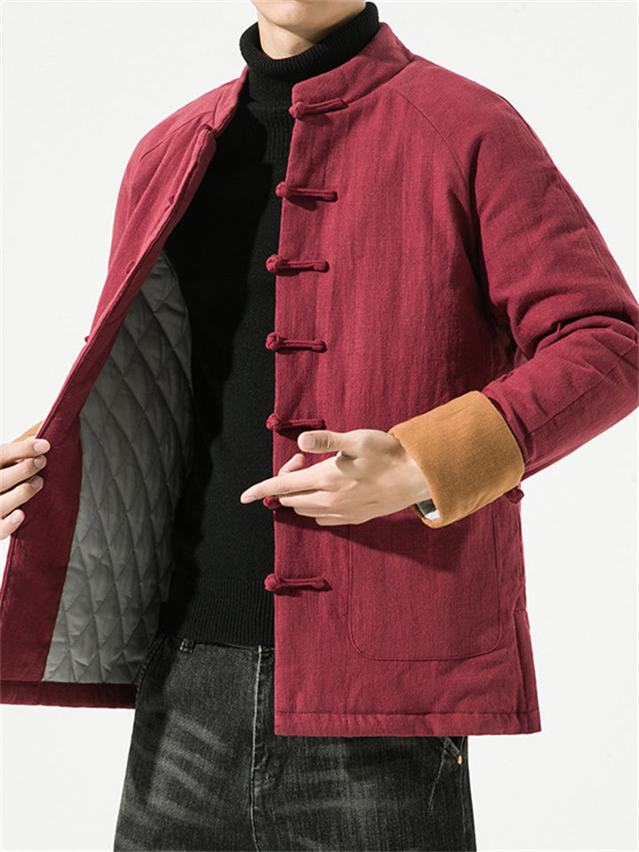 Men's Winter Vintage Solid Color Tangsuit Padded Quilted Coats