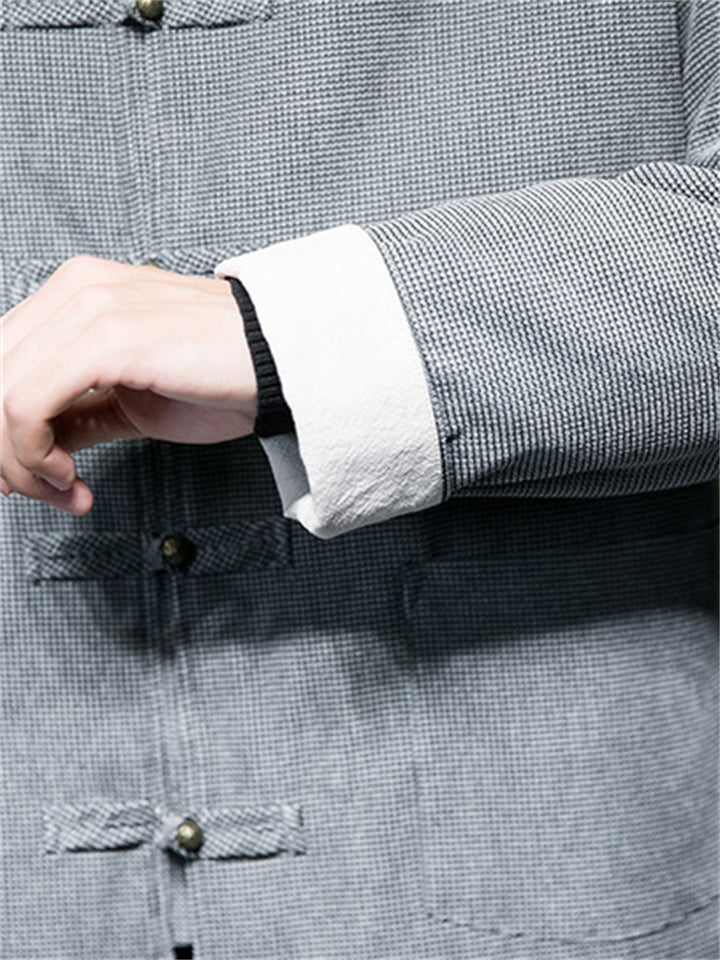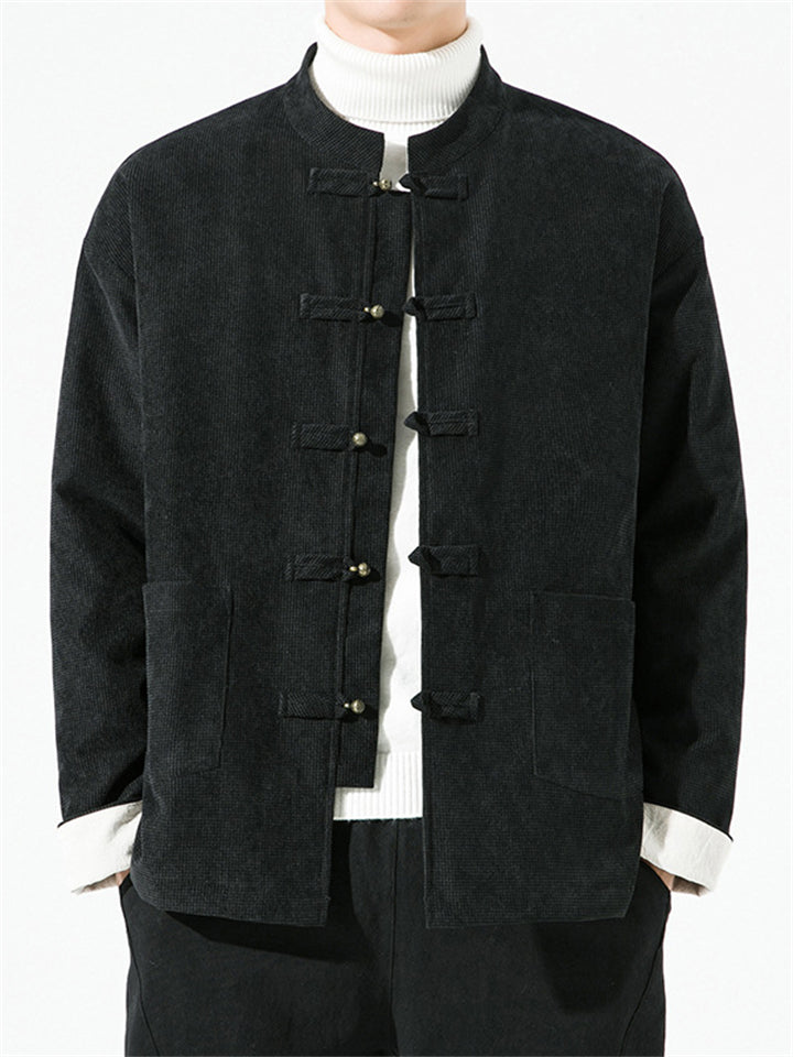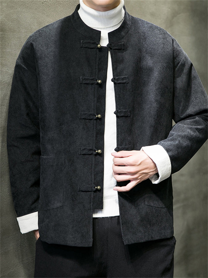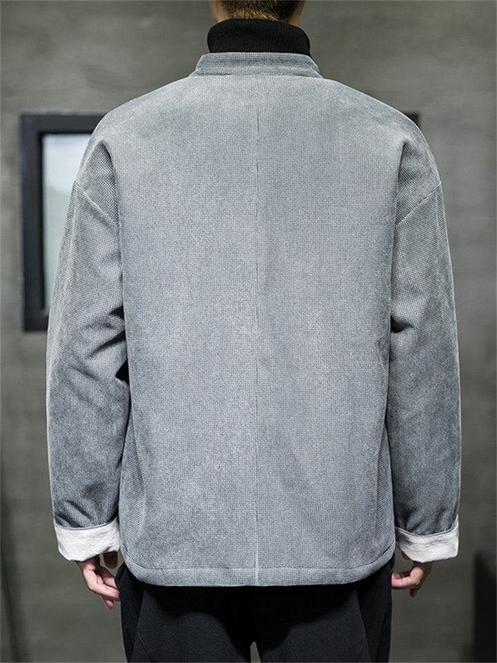 Men's Chinese Style Casual Solid Color Jacquard Cardigan Coats