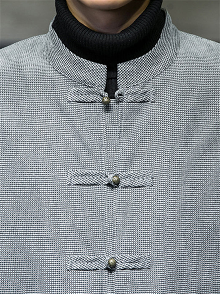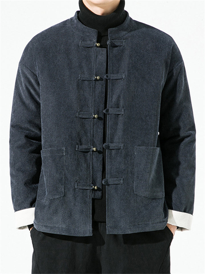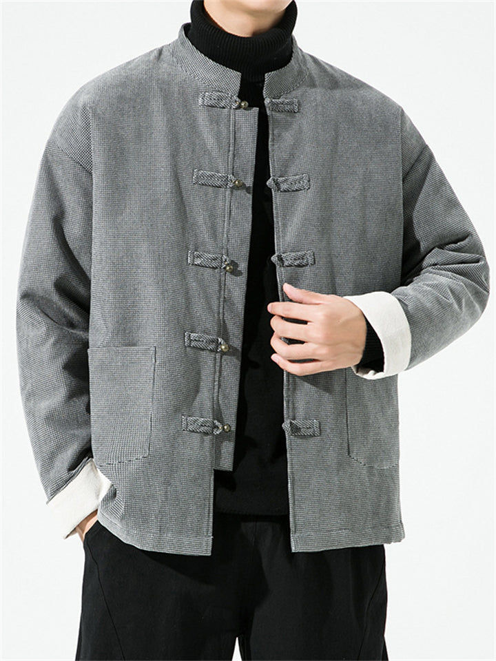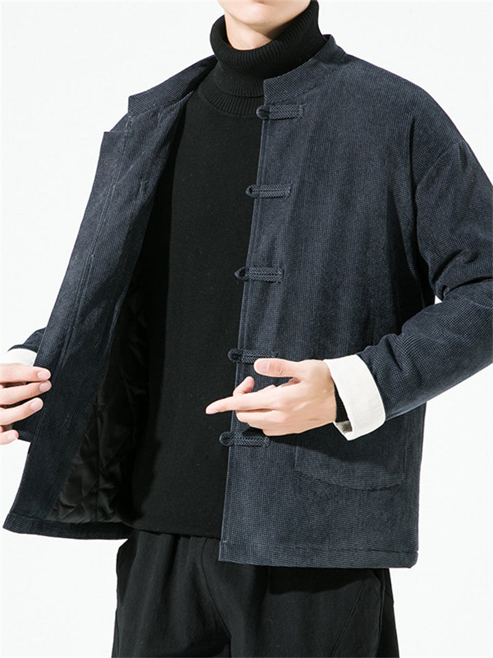 Men's Winter Vintage Solid Color Tangsuit Padded Quilted Coats