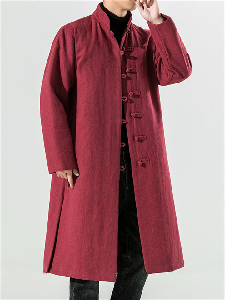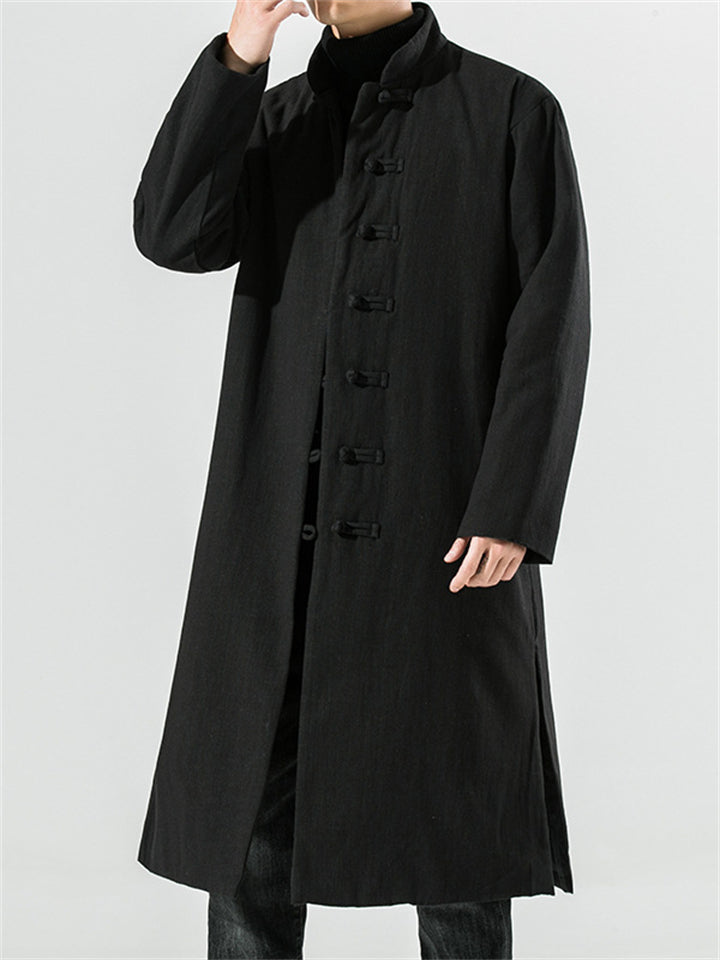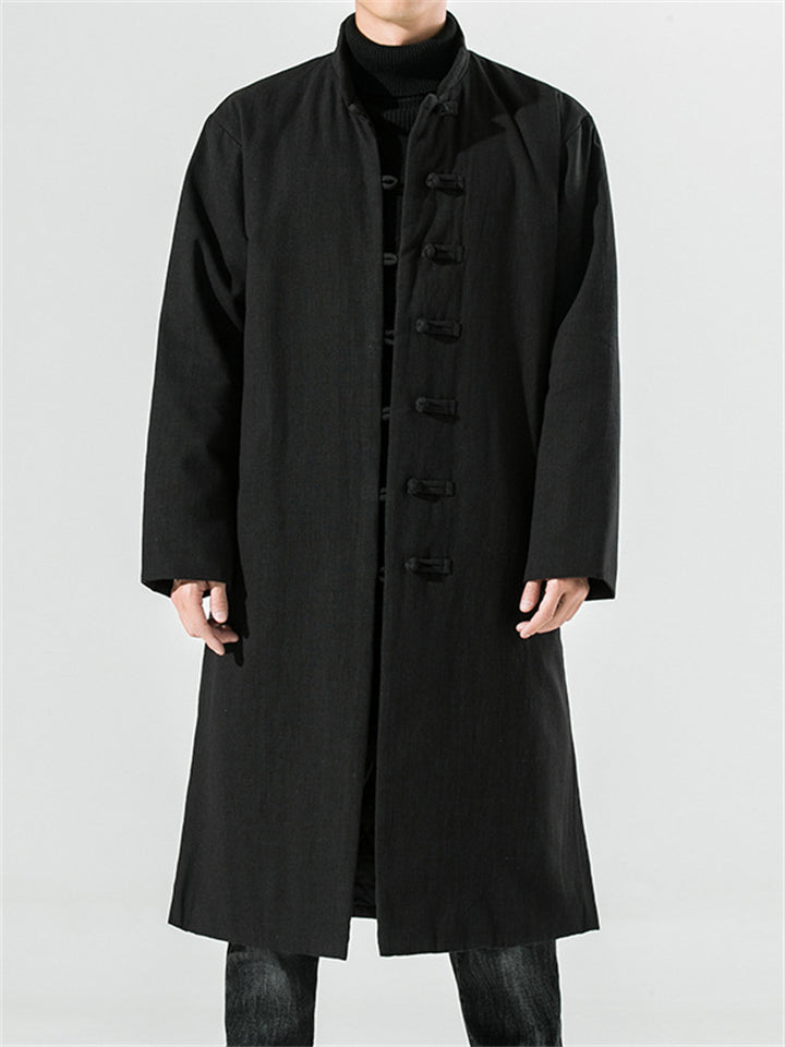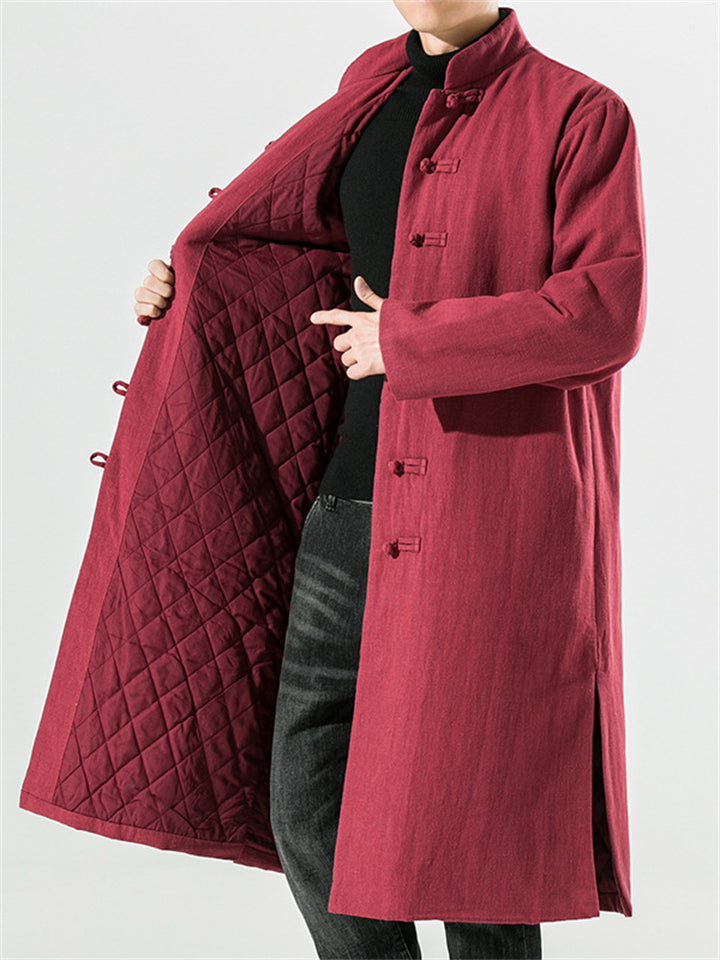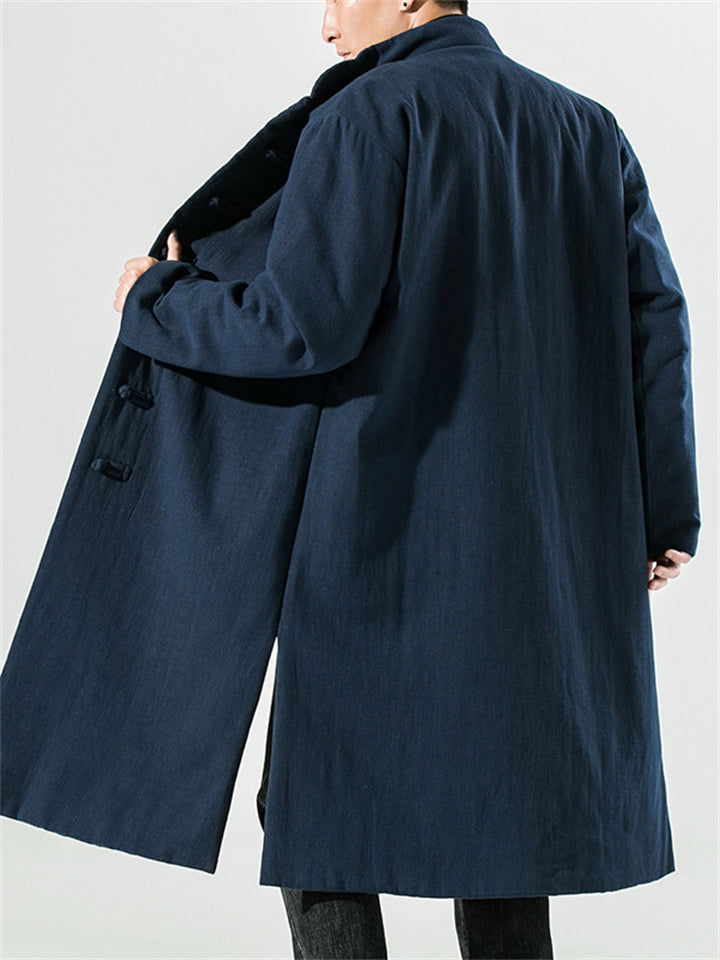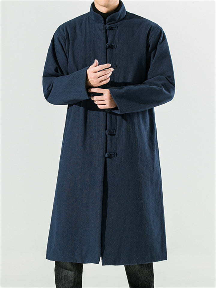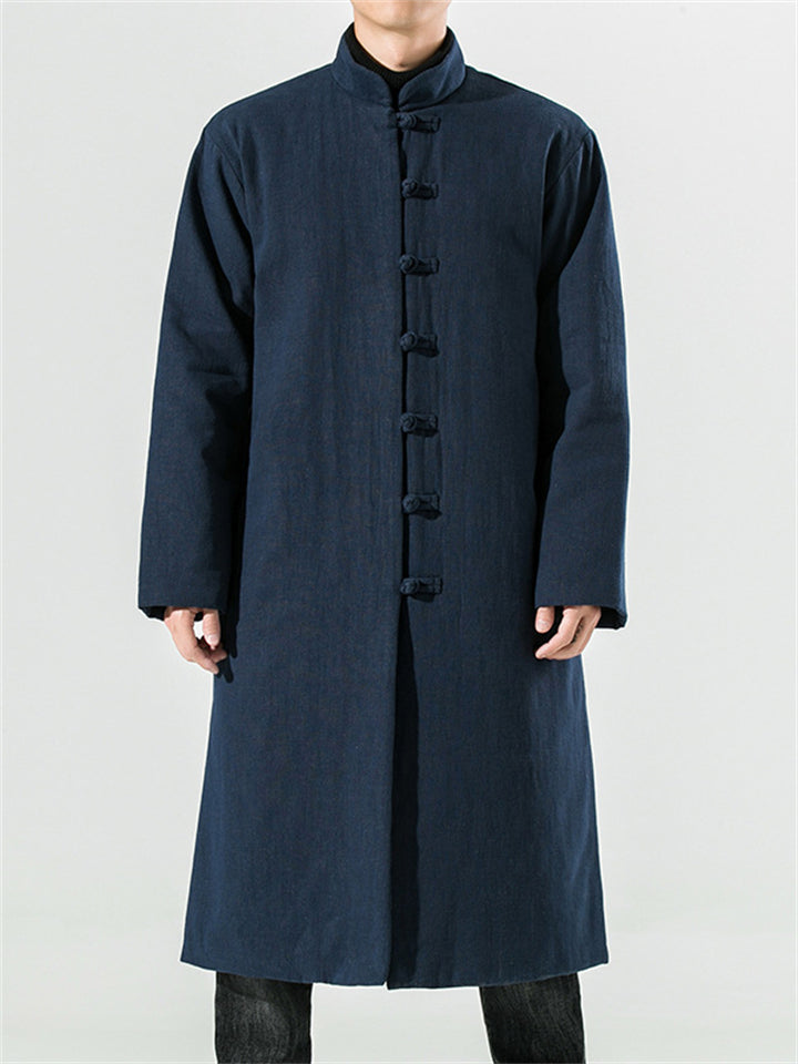 Men's Retro Plain Mid-Length Tang Suit Warm Cotton Coat