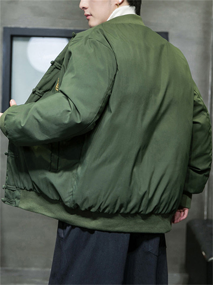 Men's Winter Vintage Solid Color Tangsuit Padded Quilted Coats