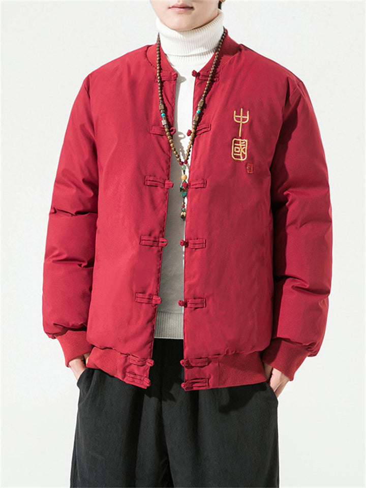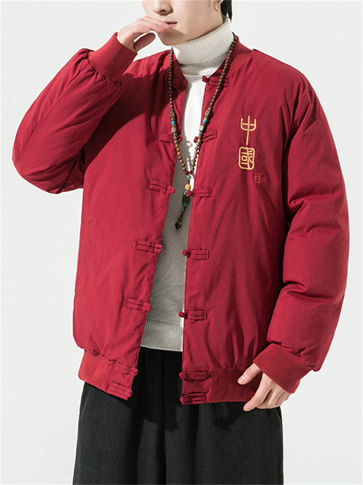 Men's Stylish Embroidery Chinese Style Cotton Padded Coats