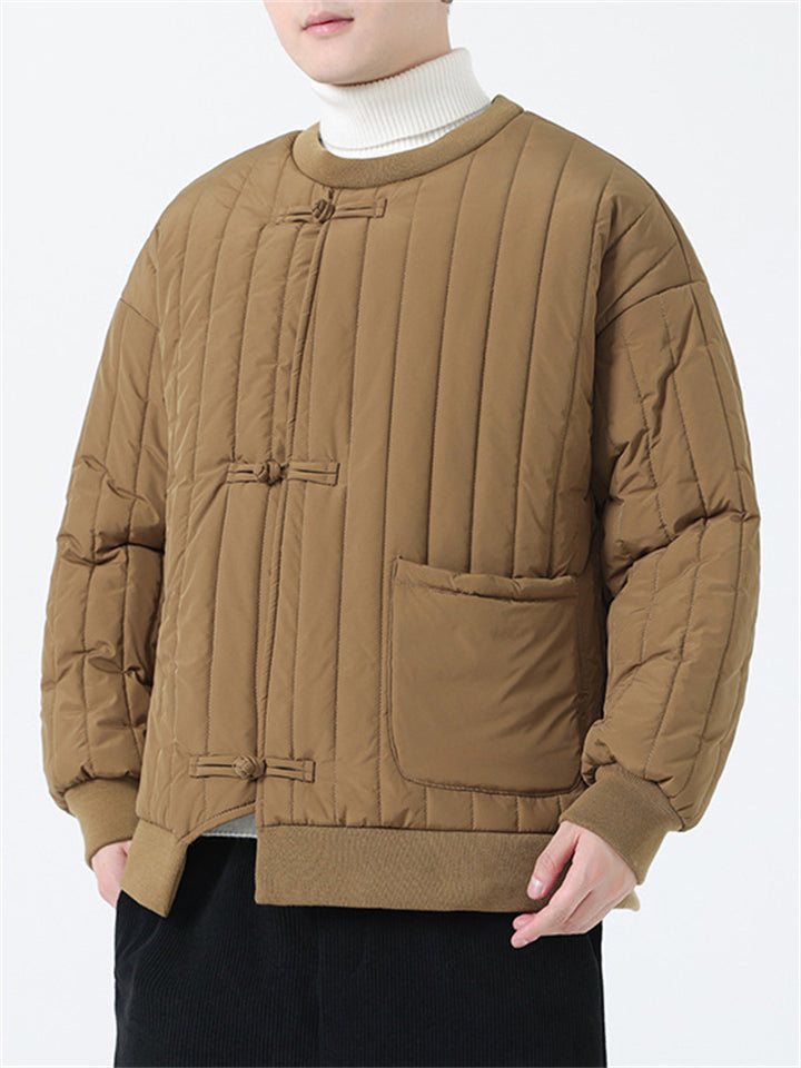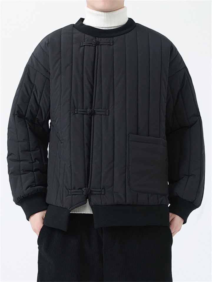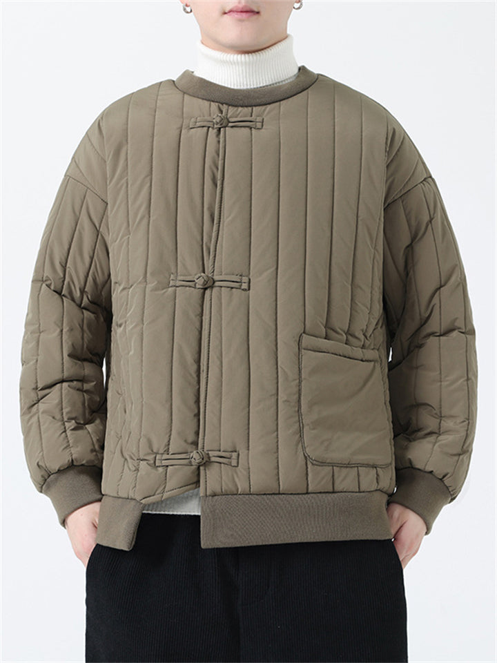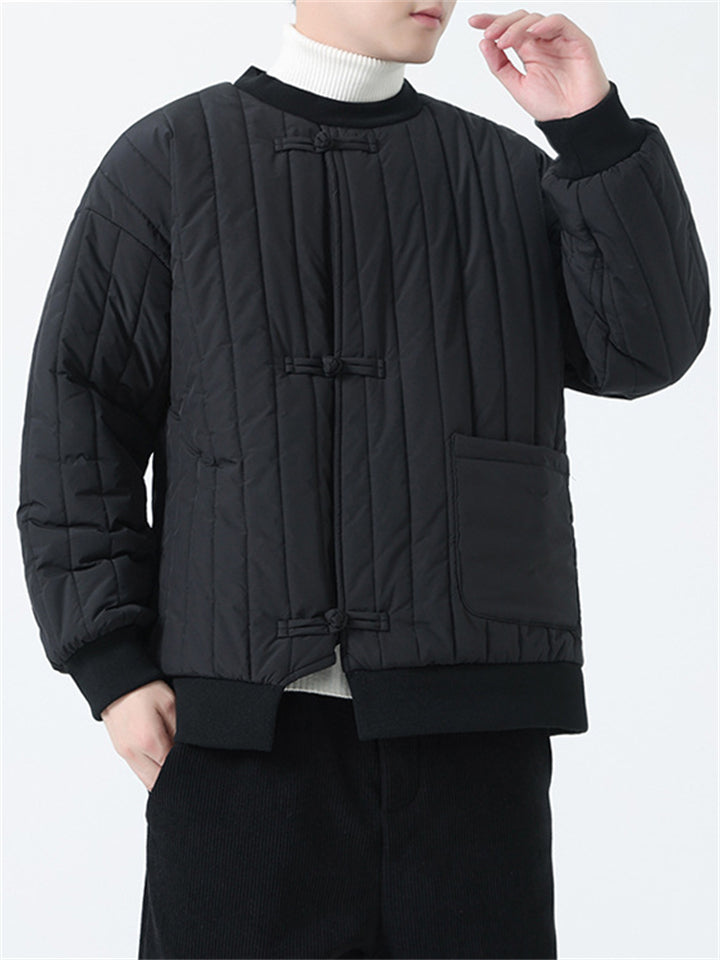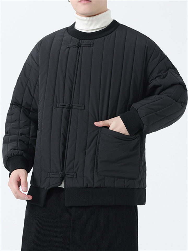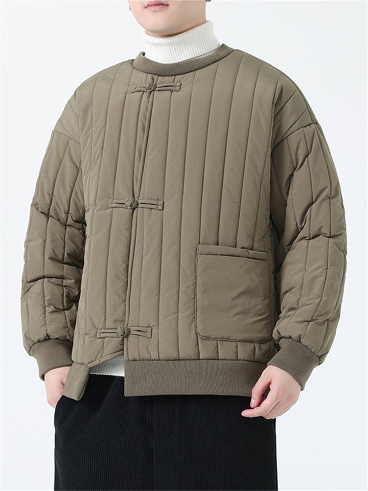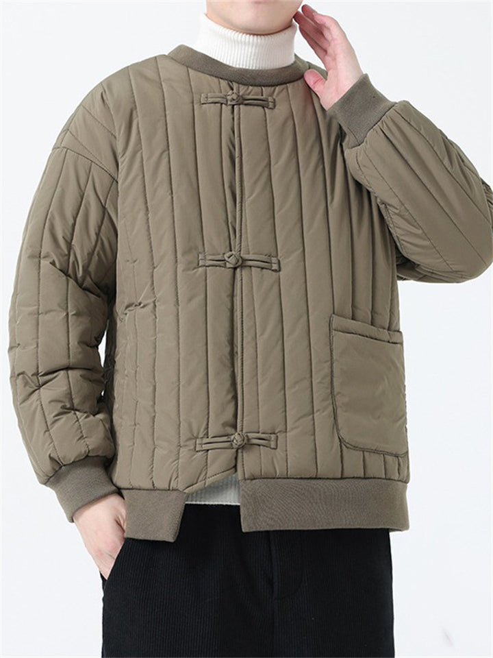 Men's Winter Vintage Solid Color Tangsuit Padded Quilted Coats