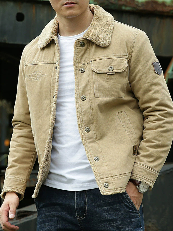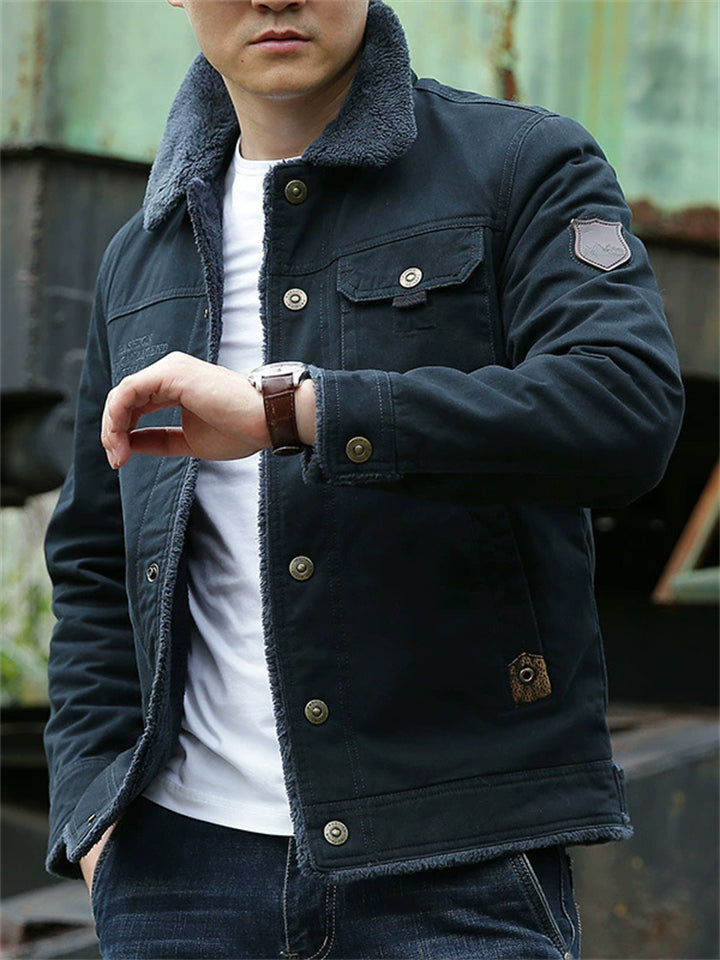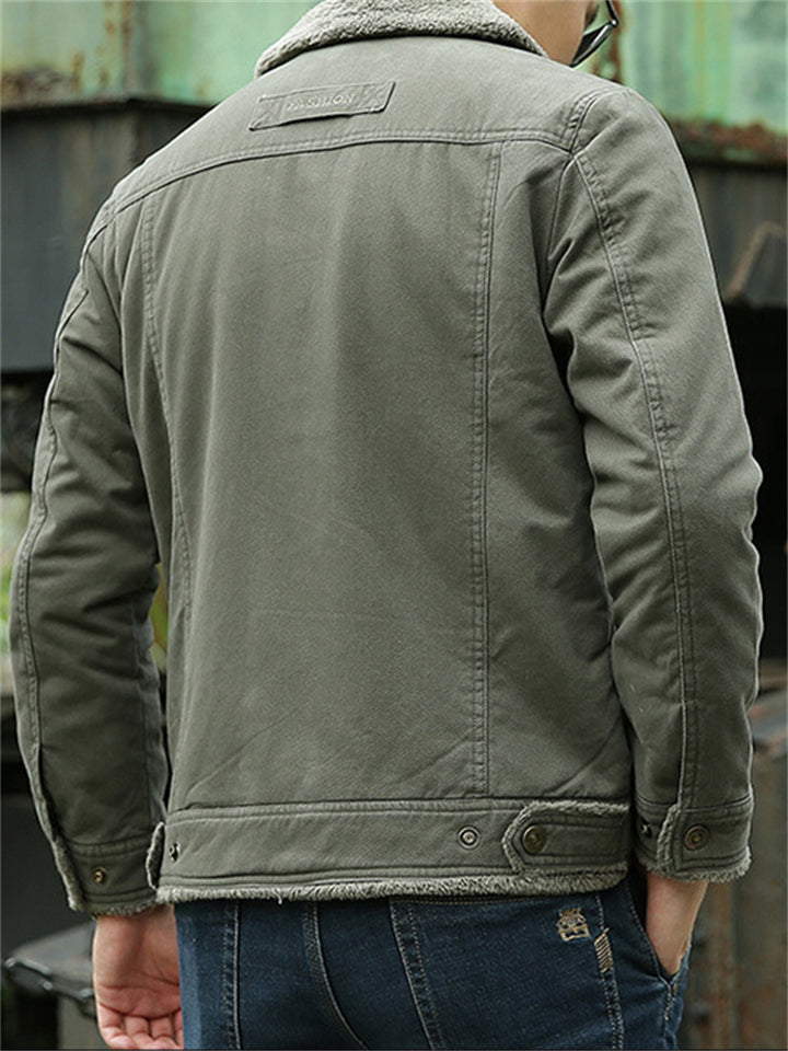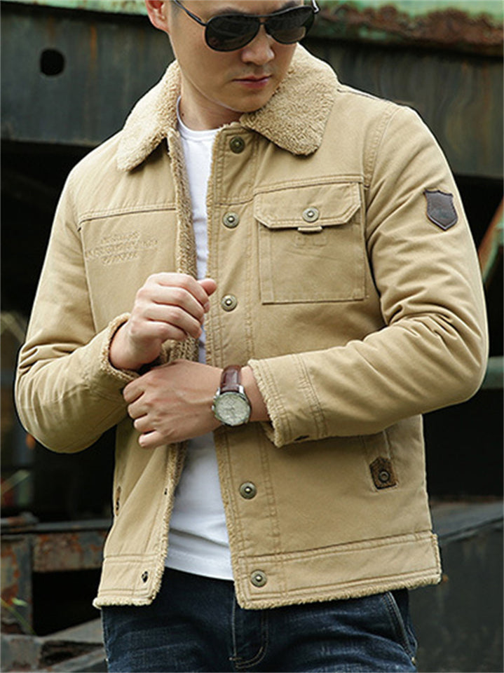 Men's Winter Fleeced Solid Color Lapel Pockets Cargo Coats